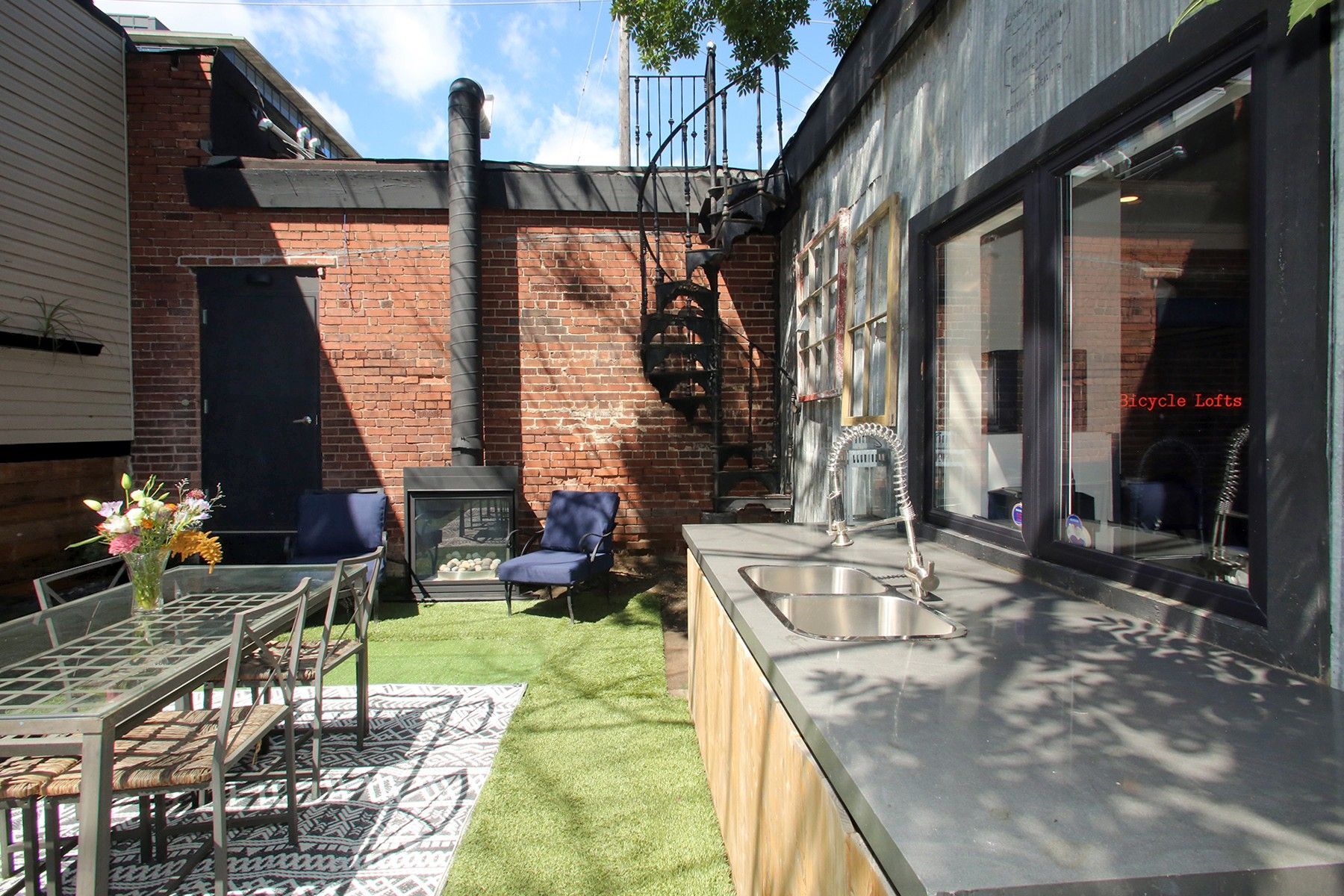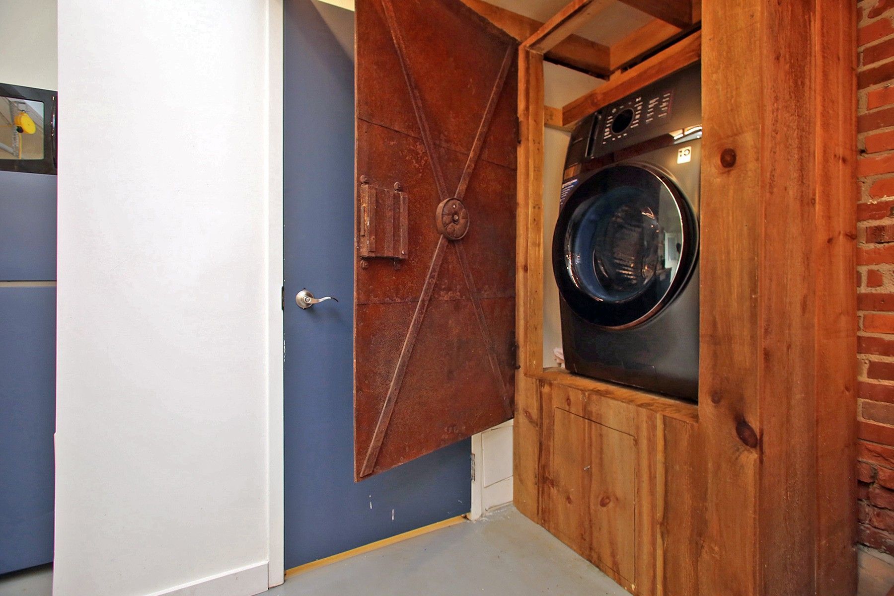 The loft's standout feature is its large window overlooking a private interior courtyard, creating a peaceful urban oasis. This outdoor space is ideal for afternoon barbecues and social gatherings, offering a perfect blend of indoor-outdoor living. Modern conveniences include in-unit laundry, making daily life effortless.