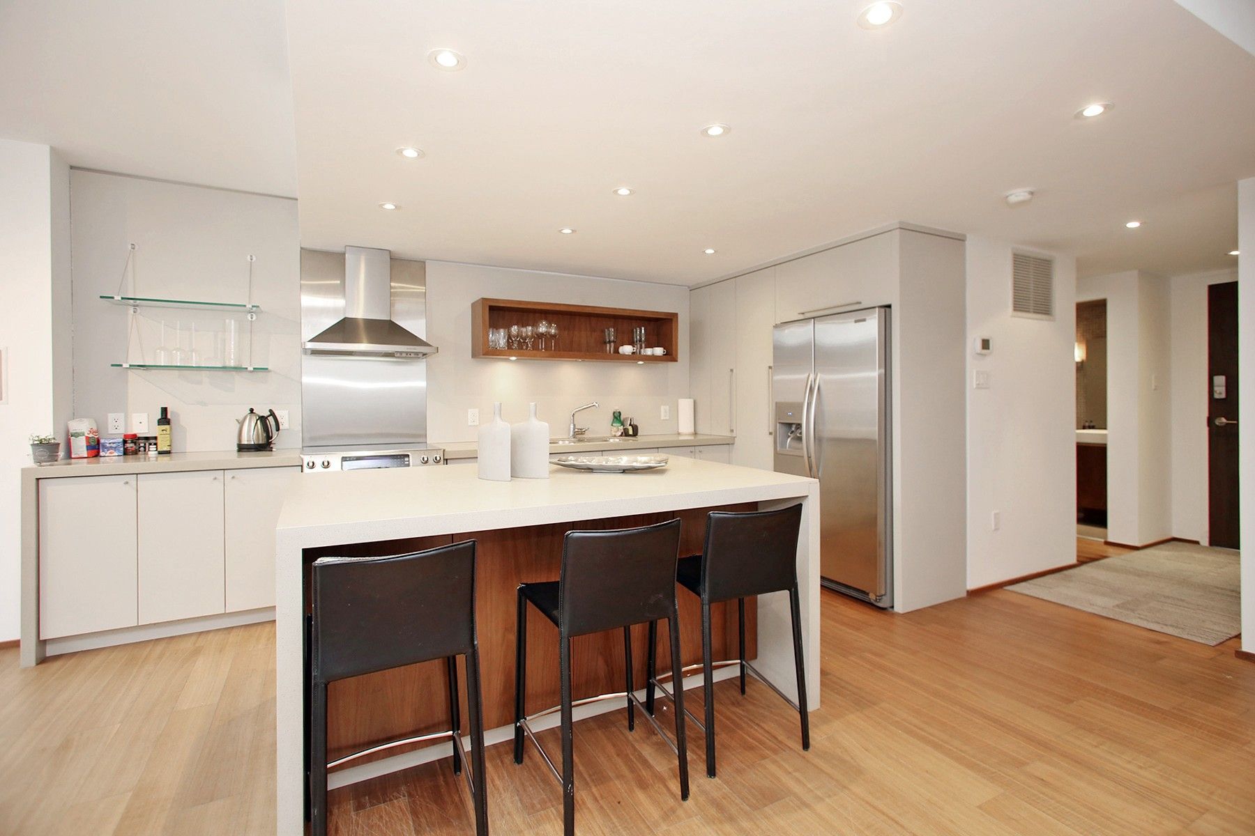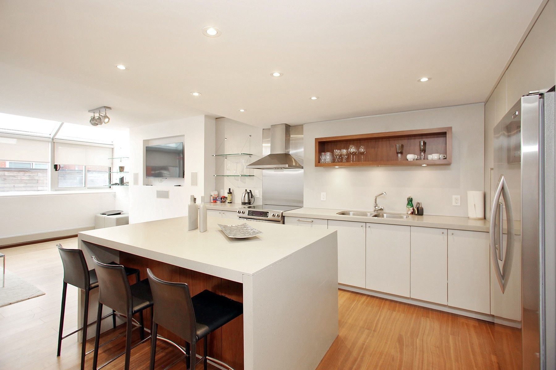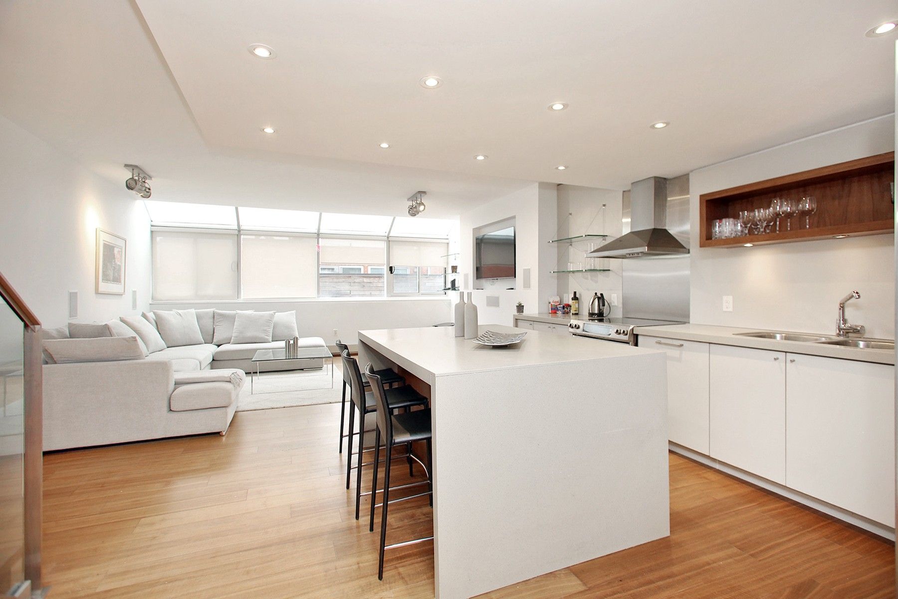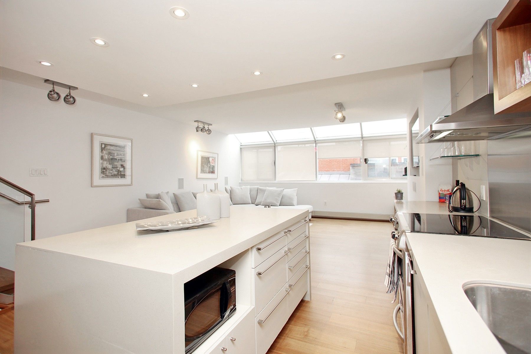 Welcome to 160 Bedford Road, Unit 304! A fully furnished gem nestled in a boutique building that promises comfort, style, and convenience in a fantastic neighborhood. Spanning 1,250 square feet of thoughtfully designed space, this condo features an open concept kitchen is a culinary enthusiast's dream with its sleek waterfall island, top-of-the-line stainless steel appliances, and abundant storage spaces. Entertain guests or enjoy peaceful moments in the living room with elegant solarium windows, inviting an abundance of natural light. Additionally, the primary and second bedrooms boast their own private balconies. The residence's charm is further enhanced by luxurious hardwood floors throughout and an architectural delight - a skylight above the stairs leading to the second floor, casting soft, natural light across the interior. Included with this rental is one convenient parking space and in unit laundry.