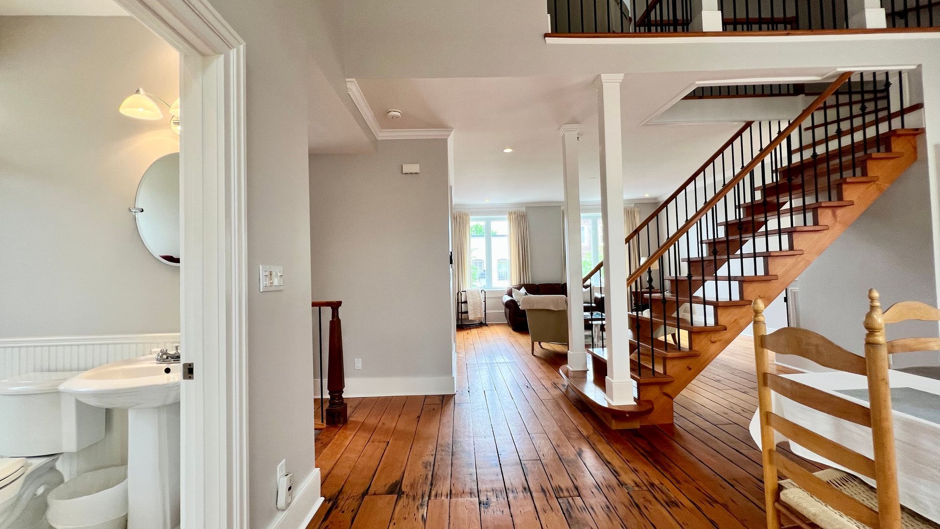 Inside, you’ll find bright, airy spaces framed by large windows that flood the home with natural light. Original hardwood floors and open-concept living areas create a warm and inviting atmosphere—ideal for both everyday living and entertaining.