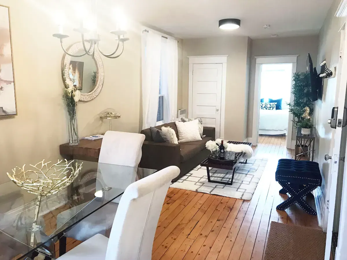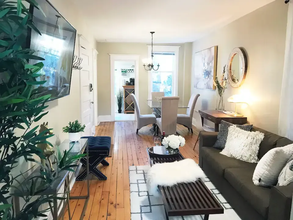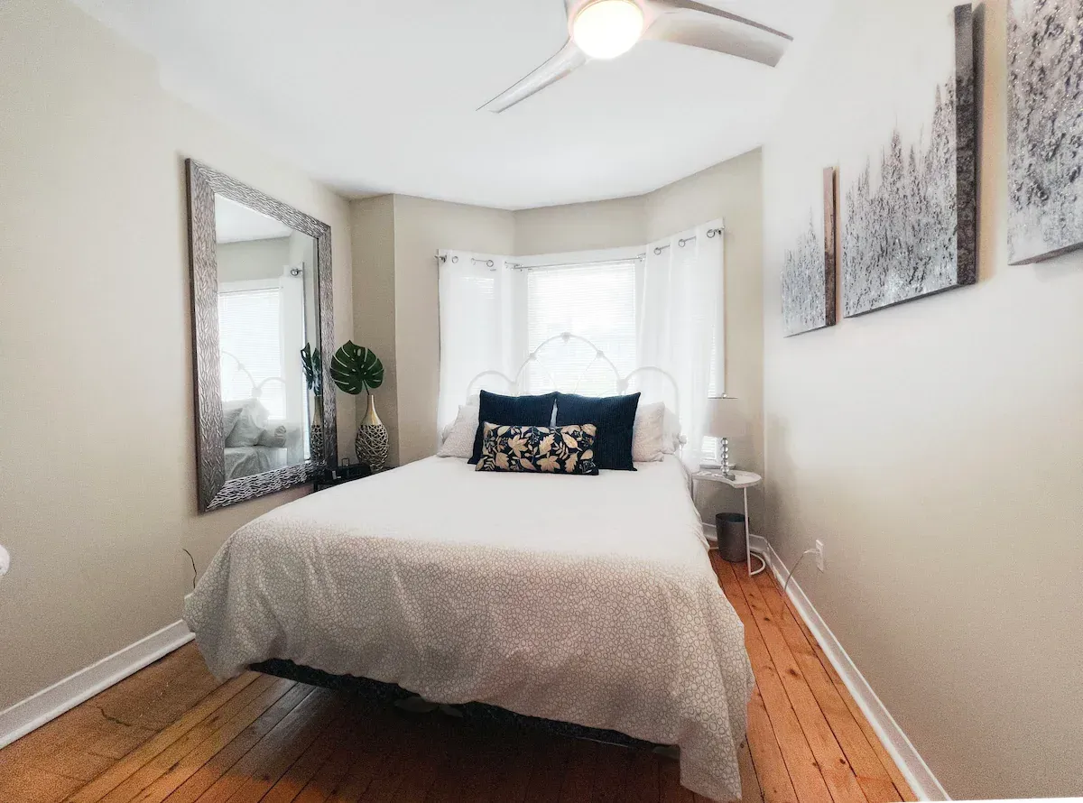 As soon as you step into this charming suite, you'll be welcomed by an open living area that's ideal for relaxing or getting some work done, thanks to our ultra-fast Wi-Fi. The space feels warm and inviting, with original 100-year-old wooden floors adding a dash of history and uniqueness. Just off the living area, you'll find a quaint, functional kitchen where you can whip up a quick meal or a morning cup of coffee. The kitchen may not be the most modern, but it's well-equipped and charming in its own right. Moving on, the bedroom offers a comfortable retreat at the end of the day, complete with all the essentials for a restful night. It's a space designed with tranquility in mind, giving you a quiet spot to recharge. Finally, don't forget that we're a pet-friendly suite! If you're bringing your furry friend along, they'll find the suite just as comfortable as you do. Nestled in a peaceful residential area yet mere minutes from vibrant Danforth, this suite truly gives you the best of both worlds. It's a space where you can enjoy the tranquility of a residential neighborhood while being just steps away from all the action Toronto has to offer.