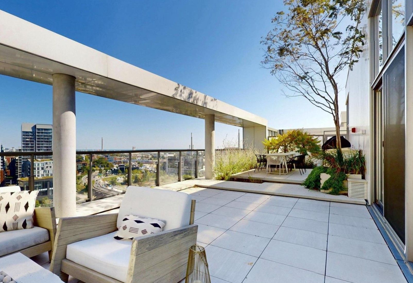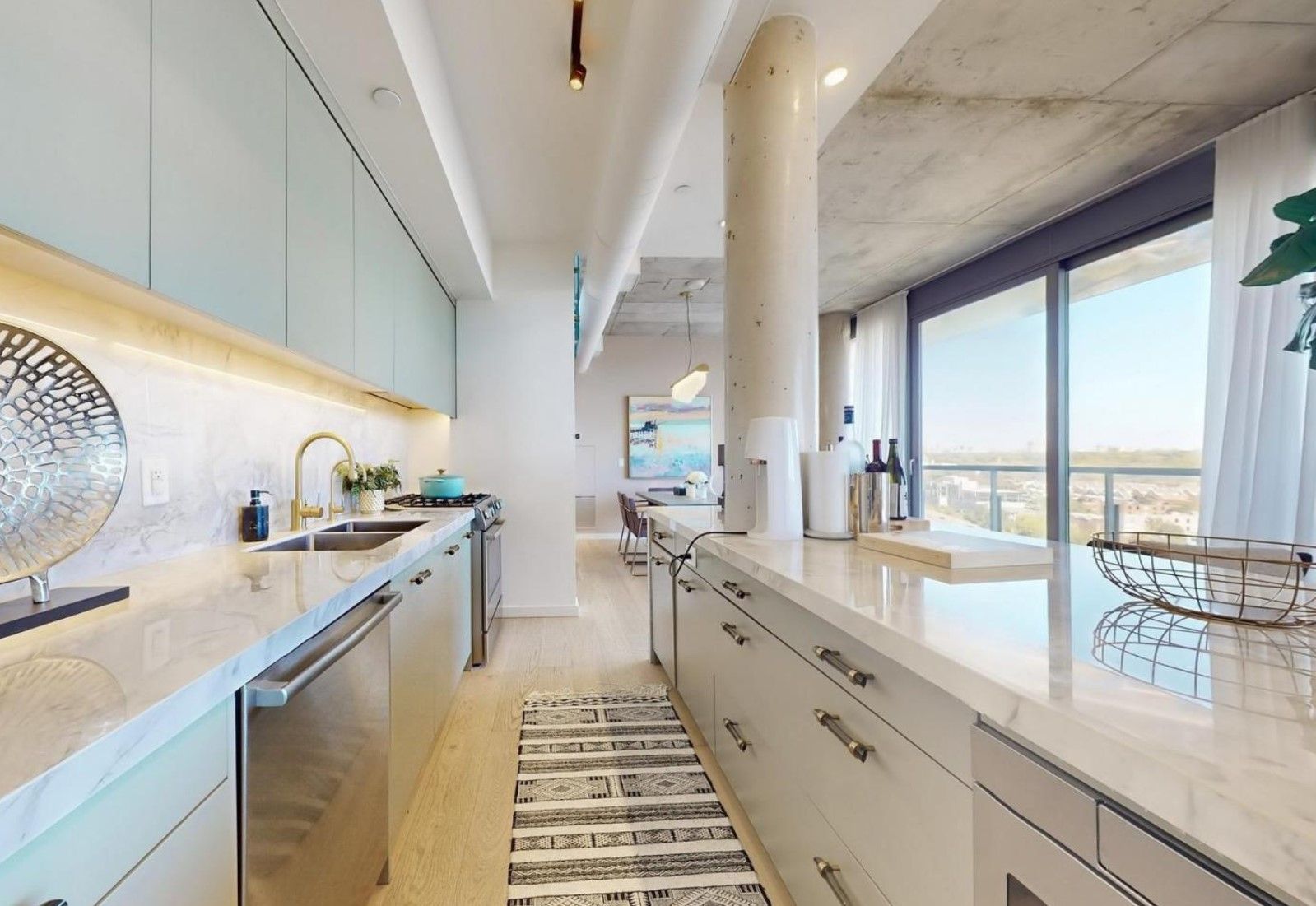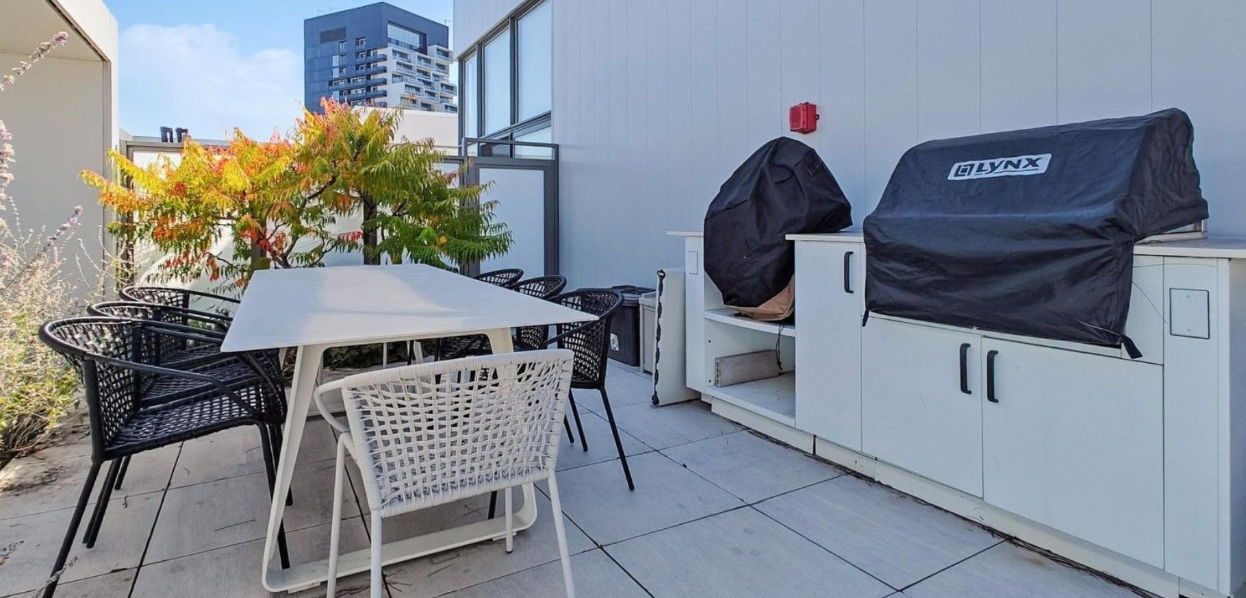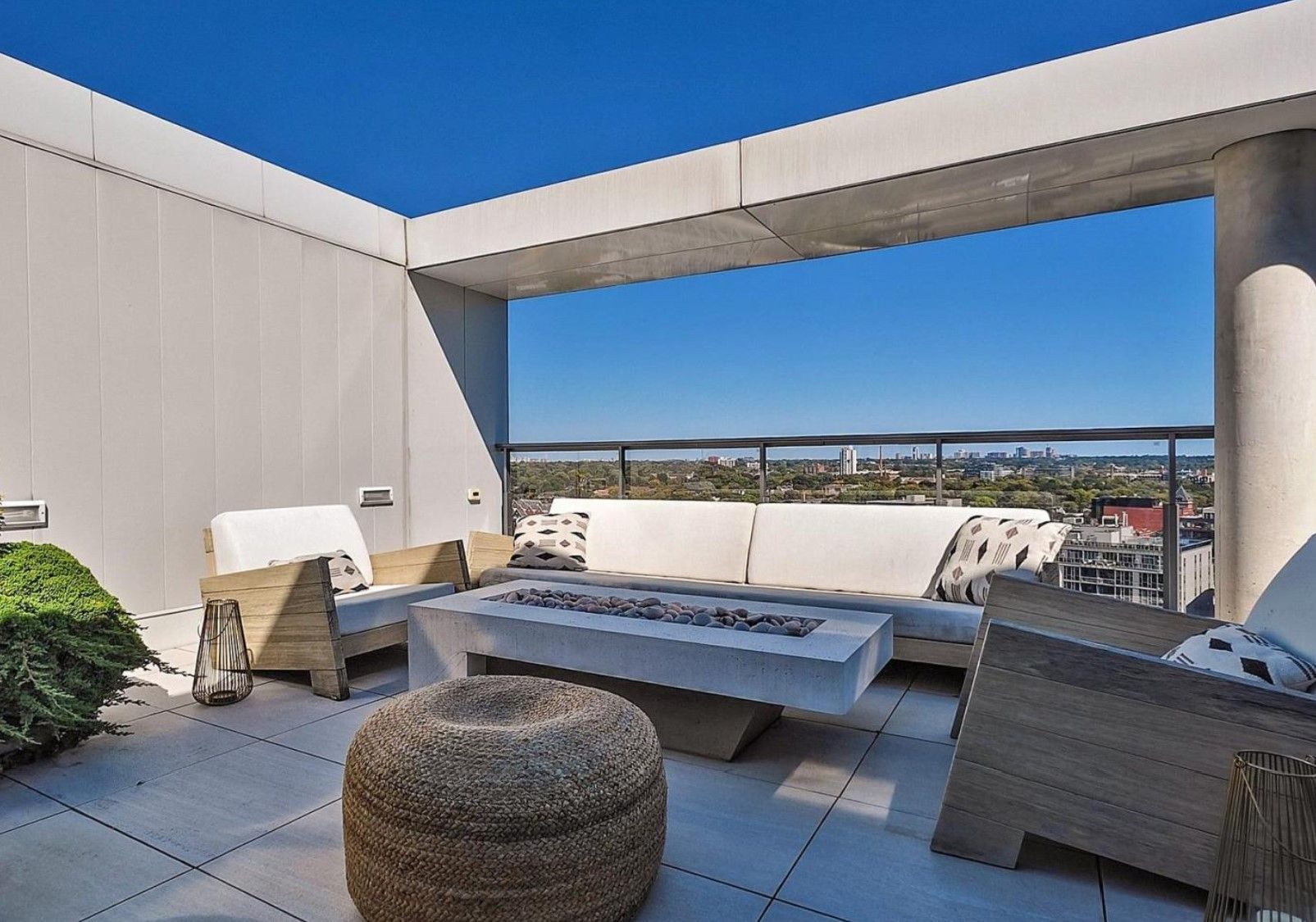Upon entry, an architectural statement sets the tone, a striking floating wood and metal staircase with glass railings introduces the home’s contemporary elegance. The main level unfolds seamlessly, with expansive living and dining areas opening onto a remarkable 55-foot balcony spanning 197 sq. ft. and offering three separate walk-outs. Bathed in natural light, the space feels bright, airy, and inviting. The gourmet kitchen overlooks the living area, creating a natural hub for gatherings both large and intimate. Two well-appointed bedrooms and two full bathrooms are discreetly positioned on the main floor, separated by the kitchen and dining areas for added privacy. The primary suite serves as a true retreat, featuring a spa-inspired ensuite and a generous walk-in closet. Every element of this home has been professionally redesigned and renovated to elevate both style and comfort, delivering a truly turnkey living experience. Upstairs, a sun-filled den opens onto an extraordinary 1,174 sq. ft. private terrace, professionally landscaped and furnished for seamless outdoor living. Complete with a built-in BBQ, multiple lounging areas, and ample space for entertaining or quiet evenings under the sky, this outdoor oasis is nothing short of exceptional. More than a home, this residence offers a lifestyle. With its rare combination of interior luxury and unparalleled outdoor living, this penthouse presents a unique opportunity to embrace urban sophistication at its finest.