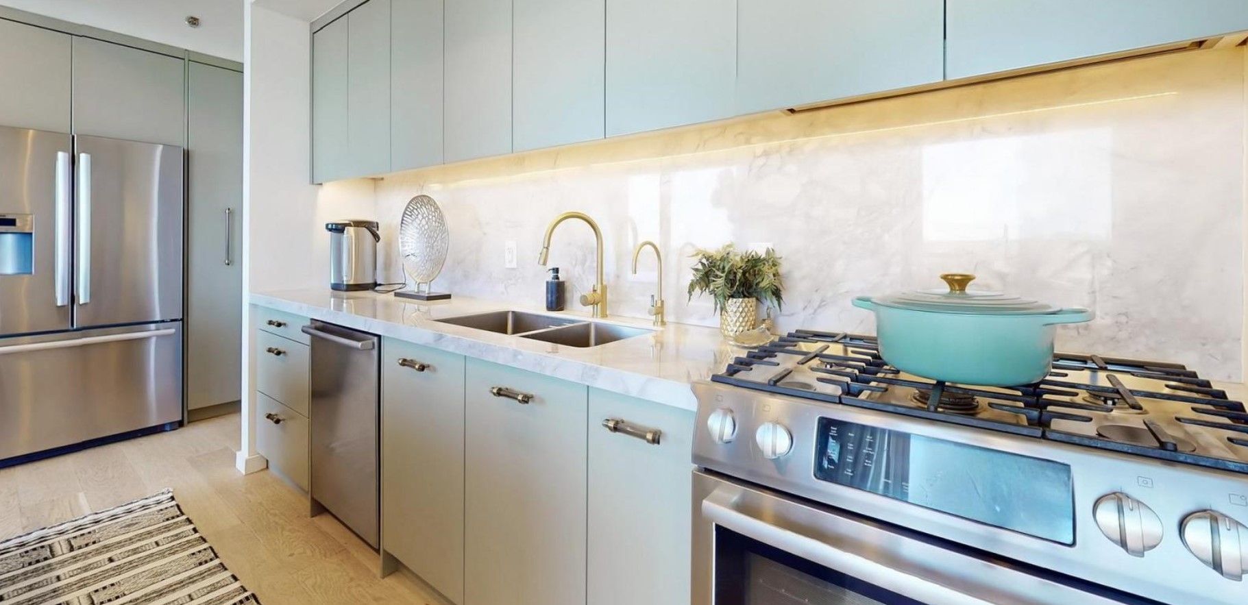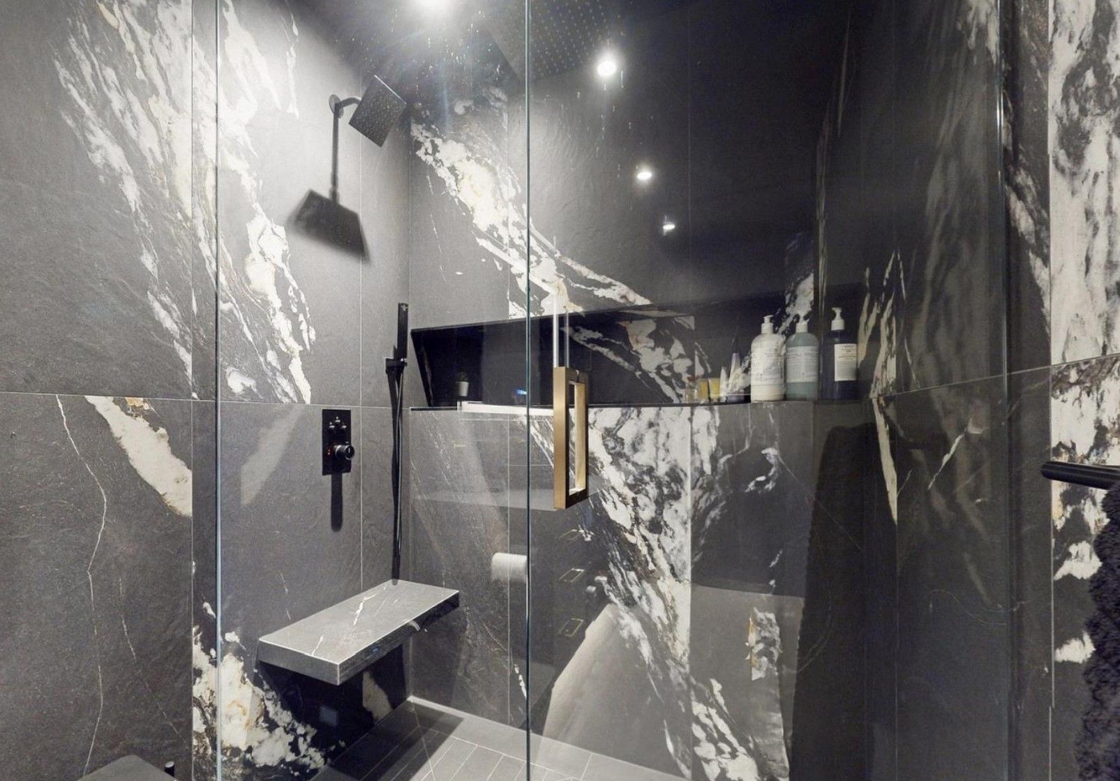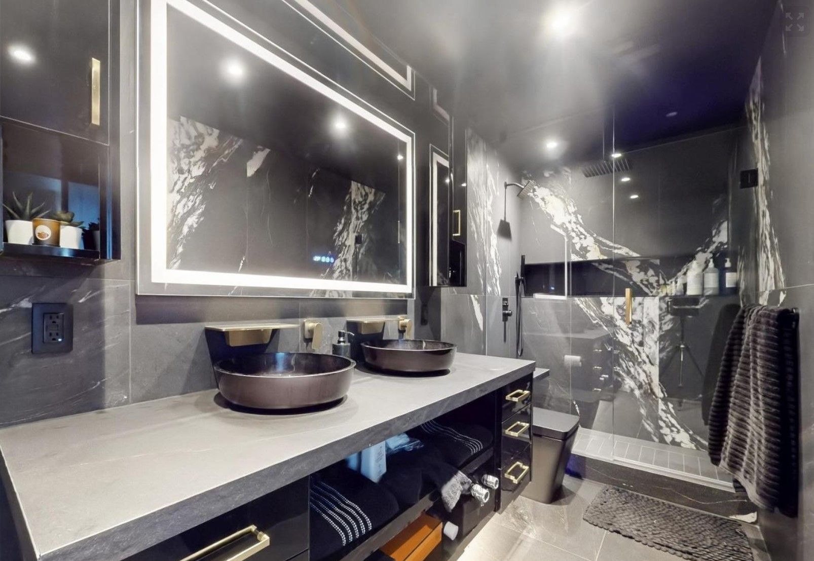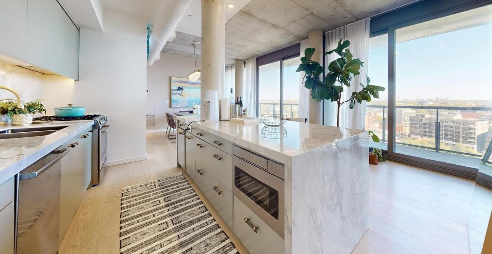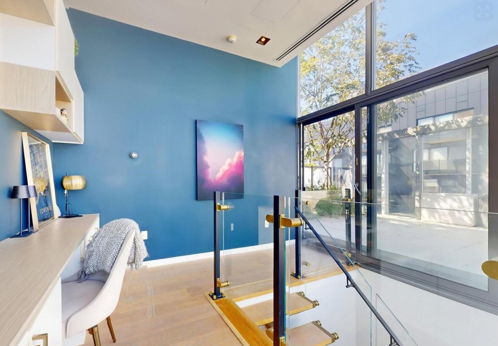 Upon entry, an architectural statement sets the tone, a striking floating wood and metal staircase with glass railings introduces the home’s contemporary elegance. The main level unfolds seamlessly, with expansive living and dining areas opening onto a remarkable 55-foot balcony spanning 197 sq. ft. and offering three separate walk-outs. Bathed in natural light, the space feels bright, airy, and inviting. The gourmet kitchen overlooks the living area, creating a natural hub for gatherings both large and intimate. Two well-appointed bedrooms and two full bathrooms are discreetly positioned on the main floor, separated by the kitchen and dining areas for added privacy. The primary suite serves as a true retreat, featuring a spa-inspired ensuite and a generous walk-in closet. Every element of this home has been professionally redesigned and renovated to elevate both style and comfort, delivering a truly turnkey living experience. Upstairs, a sun-filled den opens onto an extraordinary 1,174 sq. ft. private terrace, professionally landscaped and furnished for seamless outdoor living. Complete with a built-in BBQ, multiple lounging areas, and ample space for entertaining or quiet evenings under the sky, this outdoor oasis is nothing short of exceptional. More than a home, this residence offers a lifestyle. With its rare combination of interior luxury and unparalleled outdoor living, this penthouse presents a unique opportunity to embrace urban sophistication at its finest.