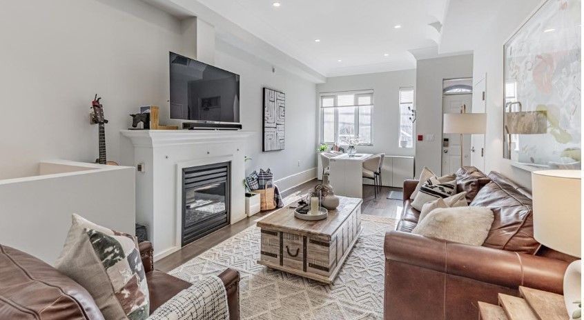 Step inside and be greeted by soaring 10-foot ceilings that create an airy, spacious atmosphere. Natural light floods through generous windows, illuminating the elegant hardwood floors and highlighting the inviting fireplace - perfect for those cozy Toronto evenings.