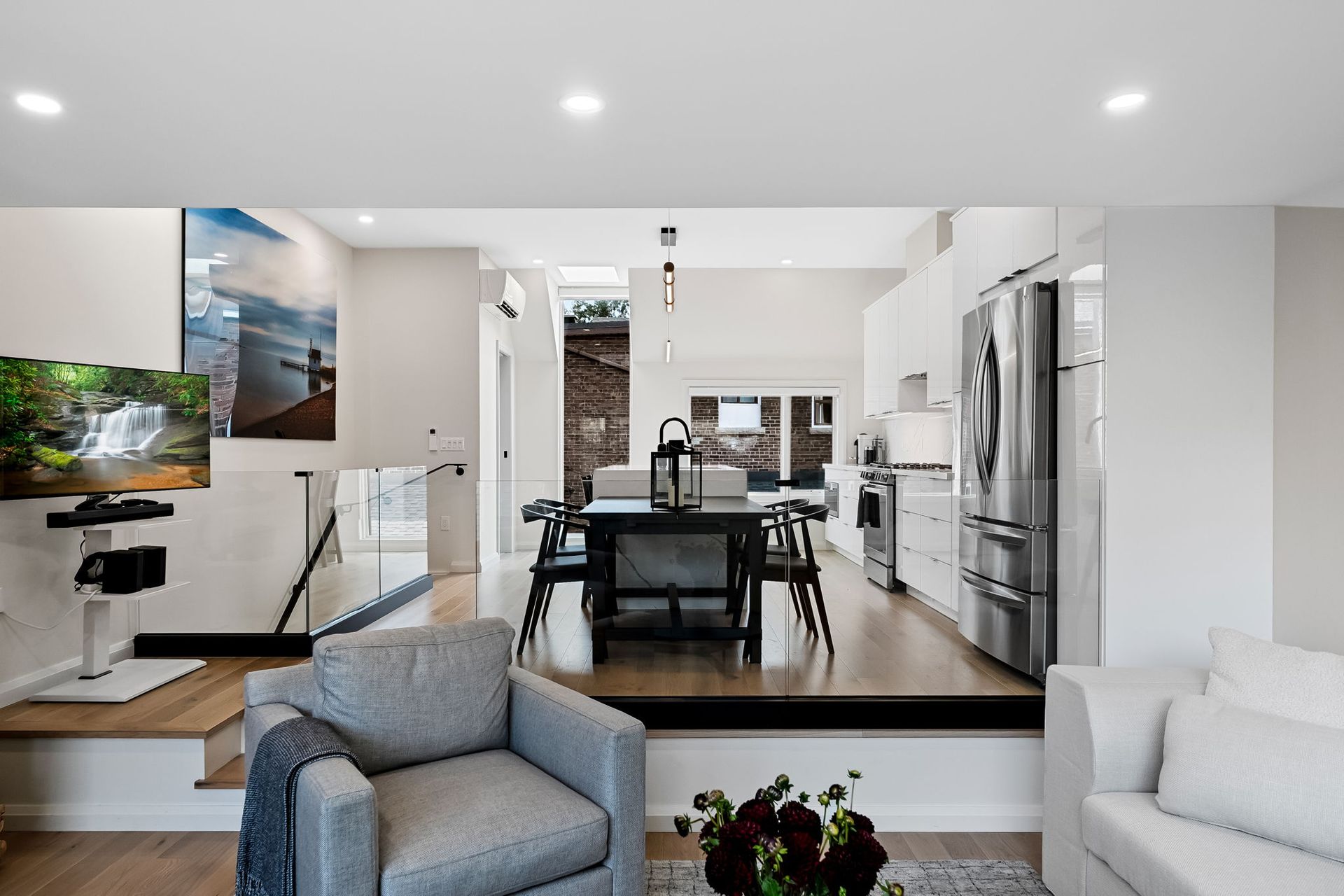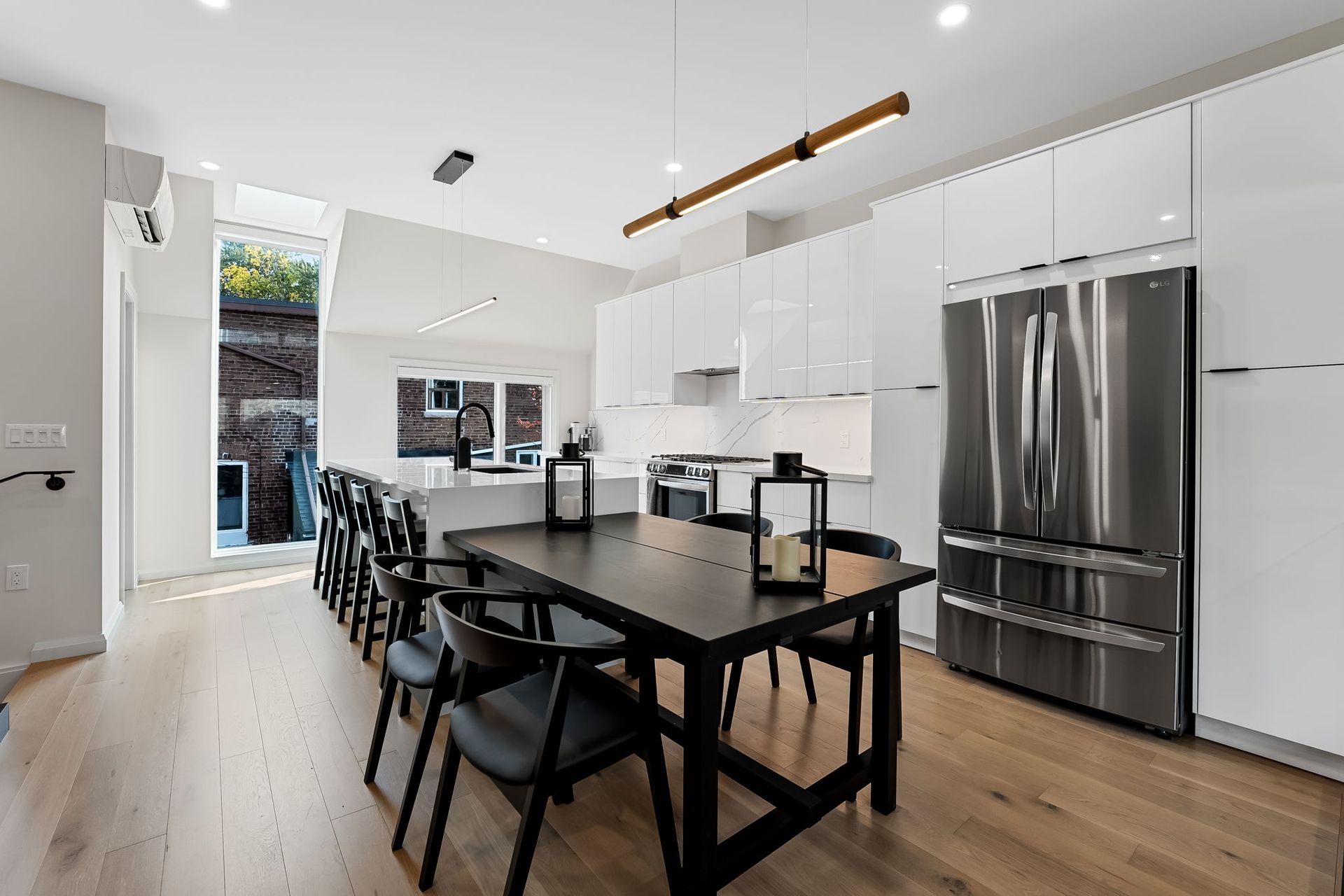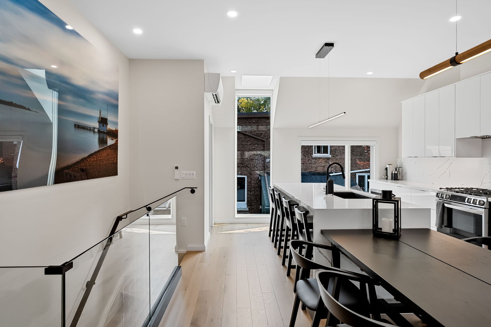 Nestled in the vibrant heart of Toronto, this exquisite laneway house beckons those with a penchant for refined living. A testament to architectural ingenuity, this brand-new abode seamlessly blends luxury with urban convenience, offering a sanctuary of sophistication amidst the city's bustling energy. As you cross the threshold, prepare to be captivated by the sheer luminosity that permeates every corner. An abundance of windows bathes the interior in natural light, creating an ambiance of openness and tranquility. The glass stair railings add a touch of contemporary elegance, elevating the aesthetic appeal to new heights.