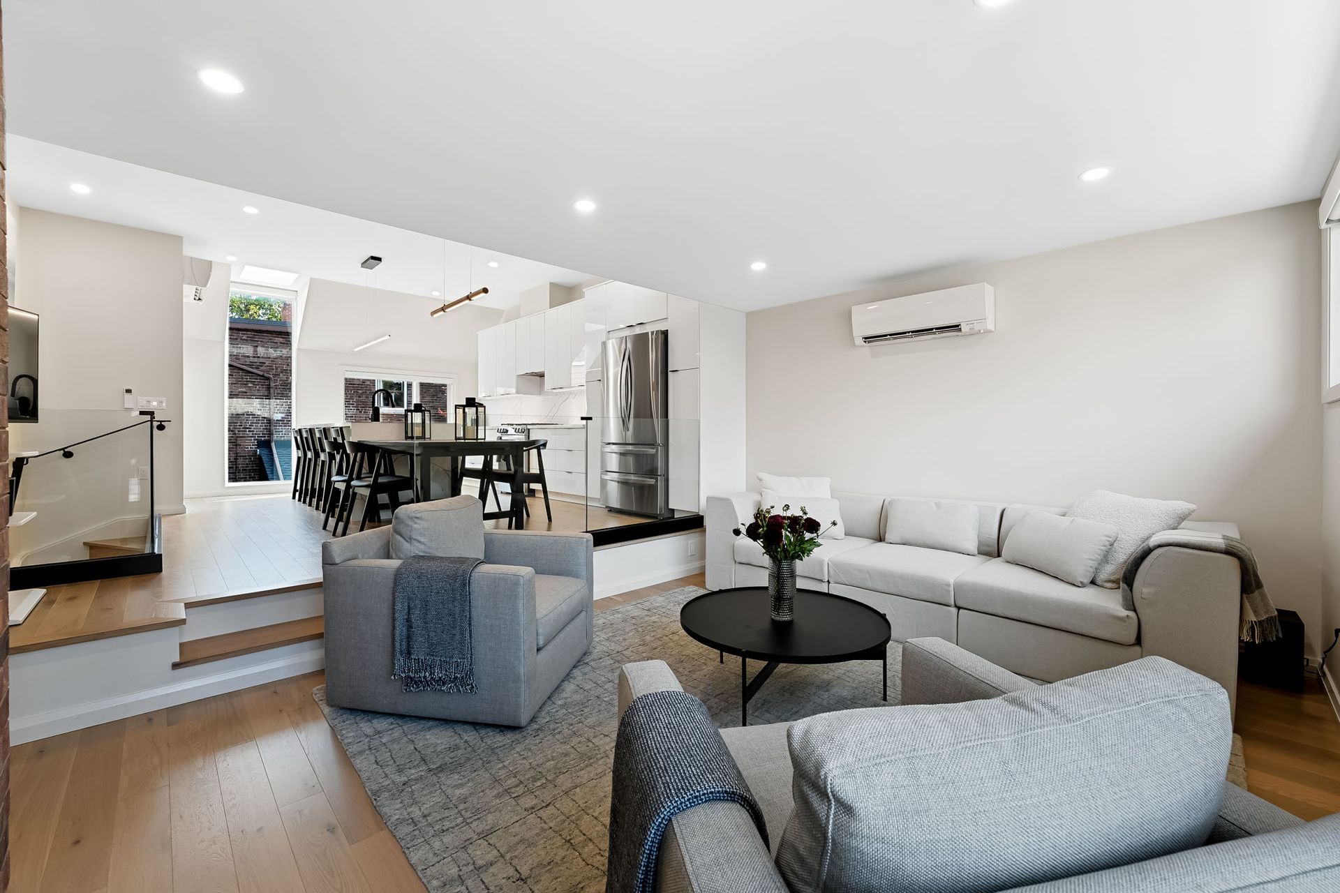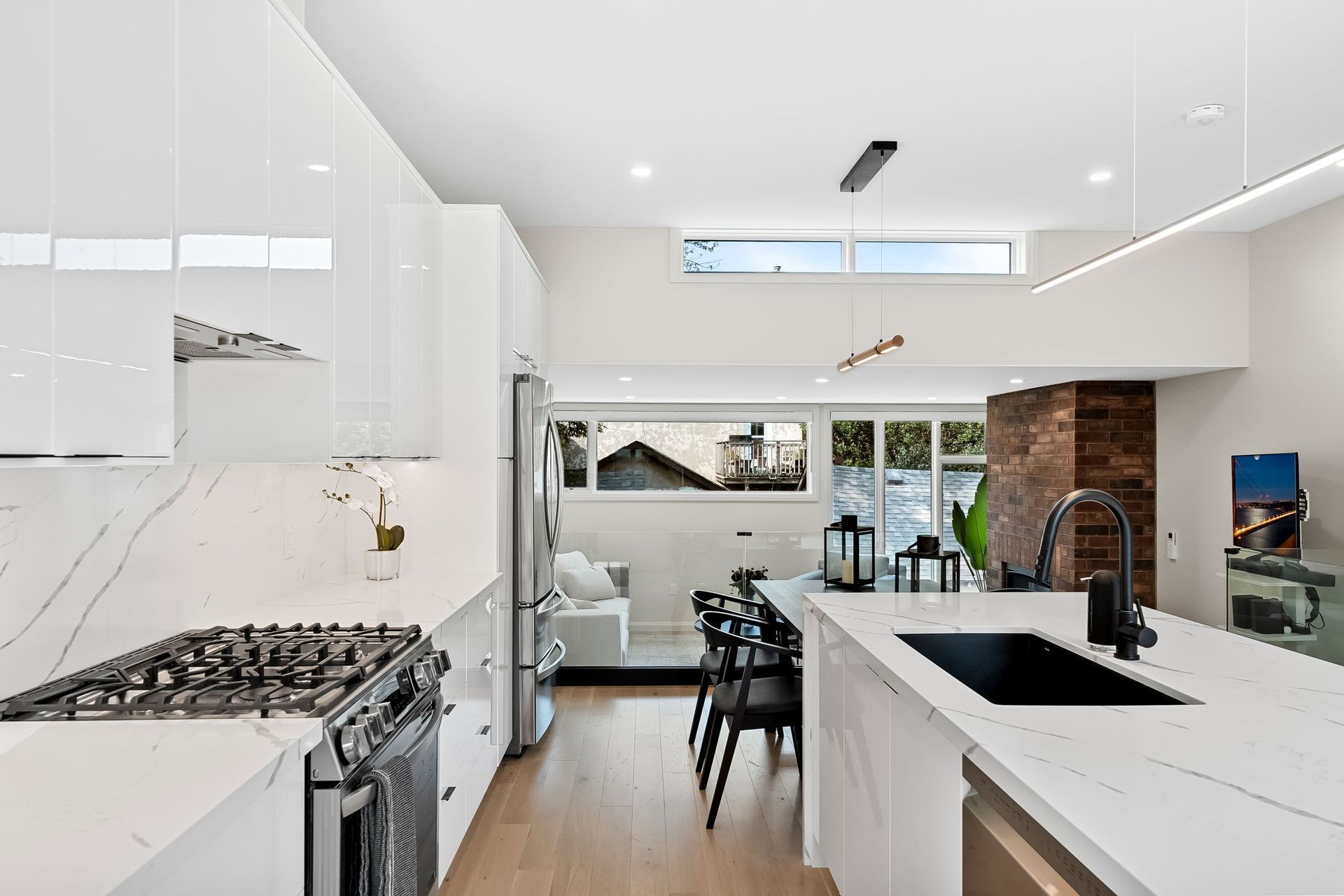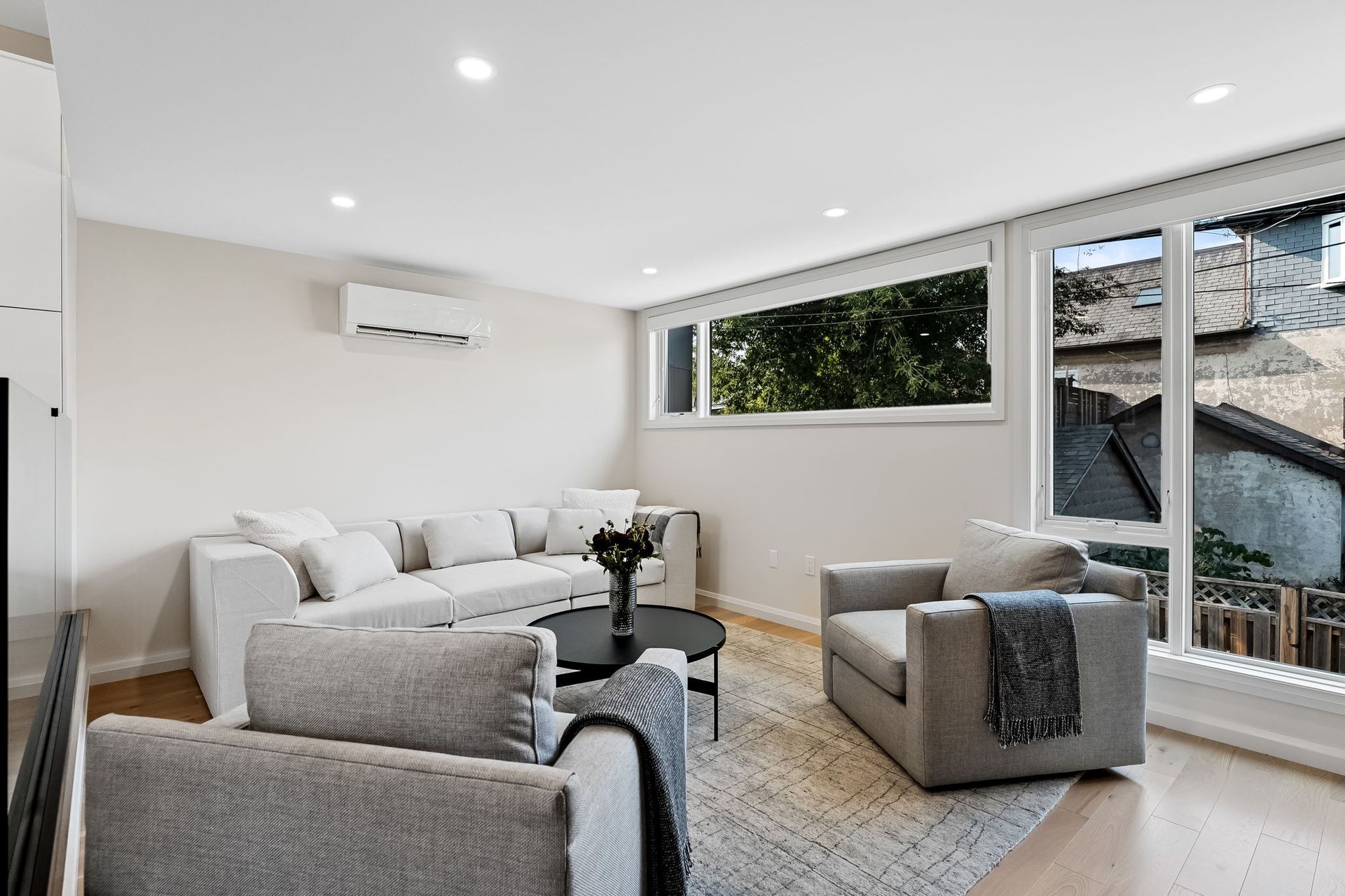 Nestled in the vibrant heart of Toronto, this exquisite laneway house beckons those with a penchant for refined living. A testament to architectural ingenuity, this brand-new abode seamlessly blends luxury with urban convenience, offering a sanctuary of sophistication amidst the city's bustling energy. As you cross the threshold, prepare to be captivated by the sheer luminosity that permeates every corner. An abundance of windows bathes the interior in natural light, creating an ambiance of openness and tranquility. The glass stair railings add a touch of contemporary elegance, elevating the aesthetic appeal to new heights.