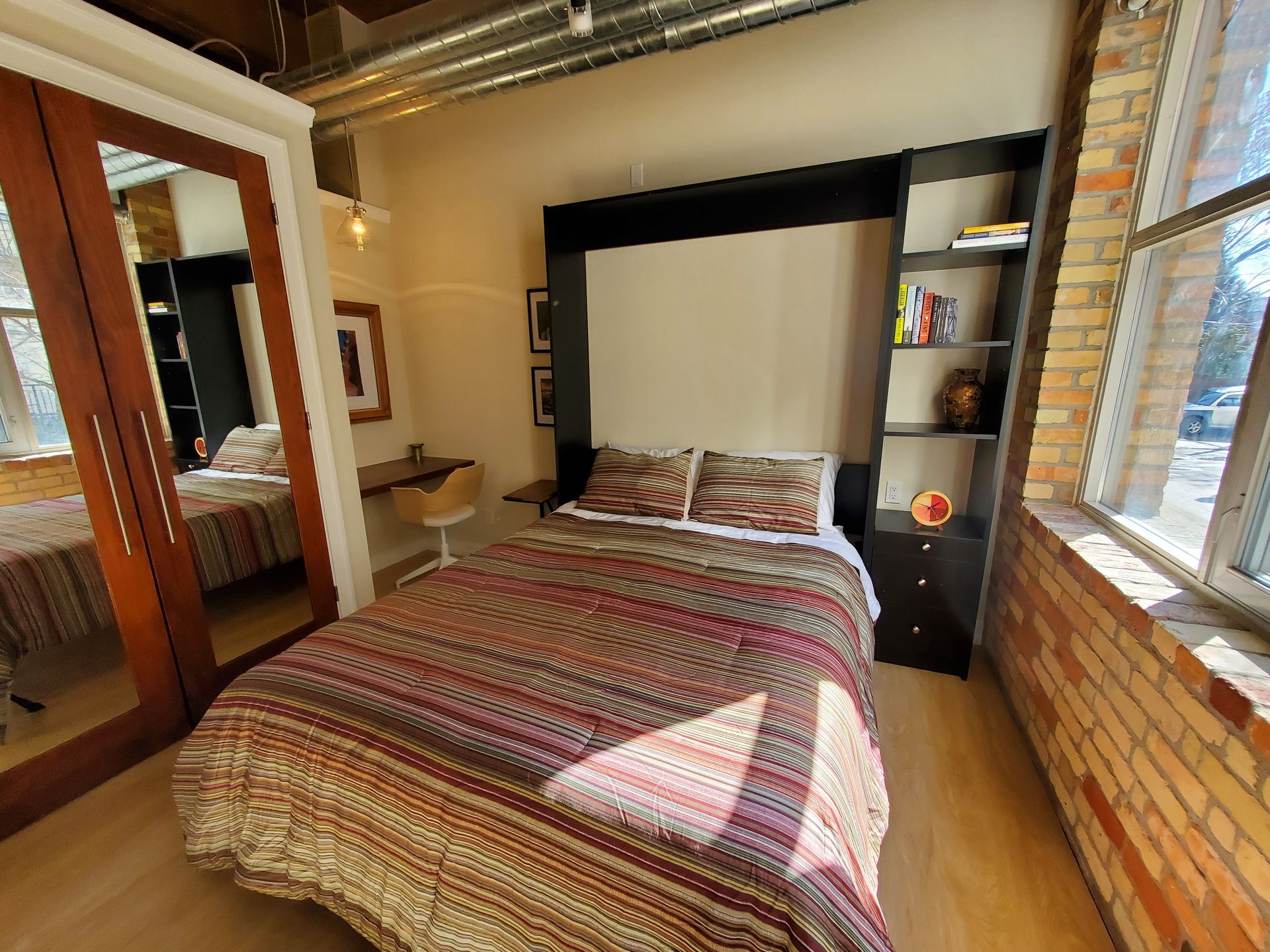Welcome to your new urban oasis at 220-955 Queen St W, Toronto. a fully furnished, move-in-ready condo that combines modern living with charming industrial elements. This soft loft features one bedroom, one bathroom, and blends wooden posts, steel beams, and exposed brick, complemented by large windows that fill the space with natural light. Located in one of the city's most desirable neighborhoods, this condo offers the perfect balance of comfort and convenience. Just steps away, you'll find Trinity Bellwoods Park, ideal for morning jogs or leisurely afternoon strolls. Daily essentials are easily accessible with Metro grocery store less than a 10-minute walk away.Transportation is a breeze as the property is situated near Exhibition GO and Dundas St West at Ossington Ave bus station, ensuring you are well-connected to the rest of the city. This property is not just a place to live, but a lifestyle choice for those seeking a dynamic urban environment without sacrificing comfort and style. Ready to make it your new home? Let's get you in to see it before its snapped up!