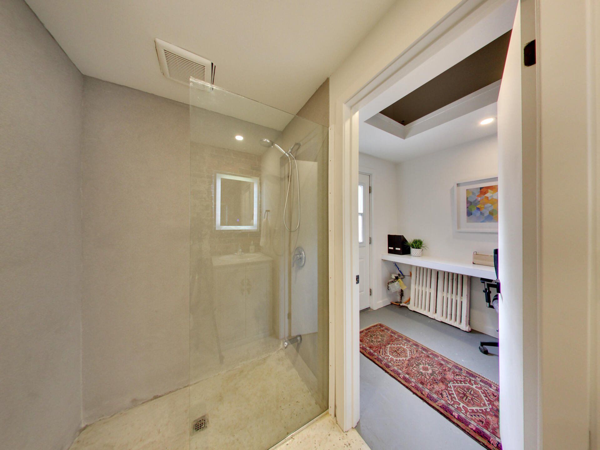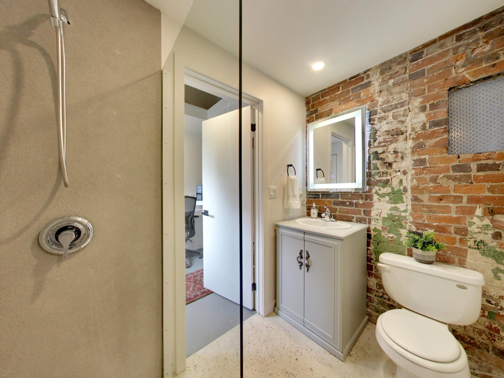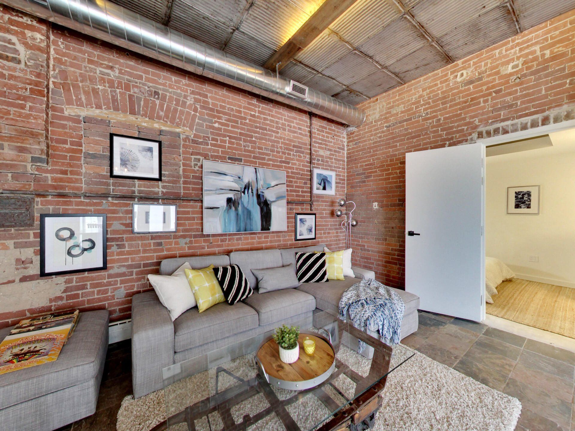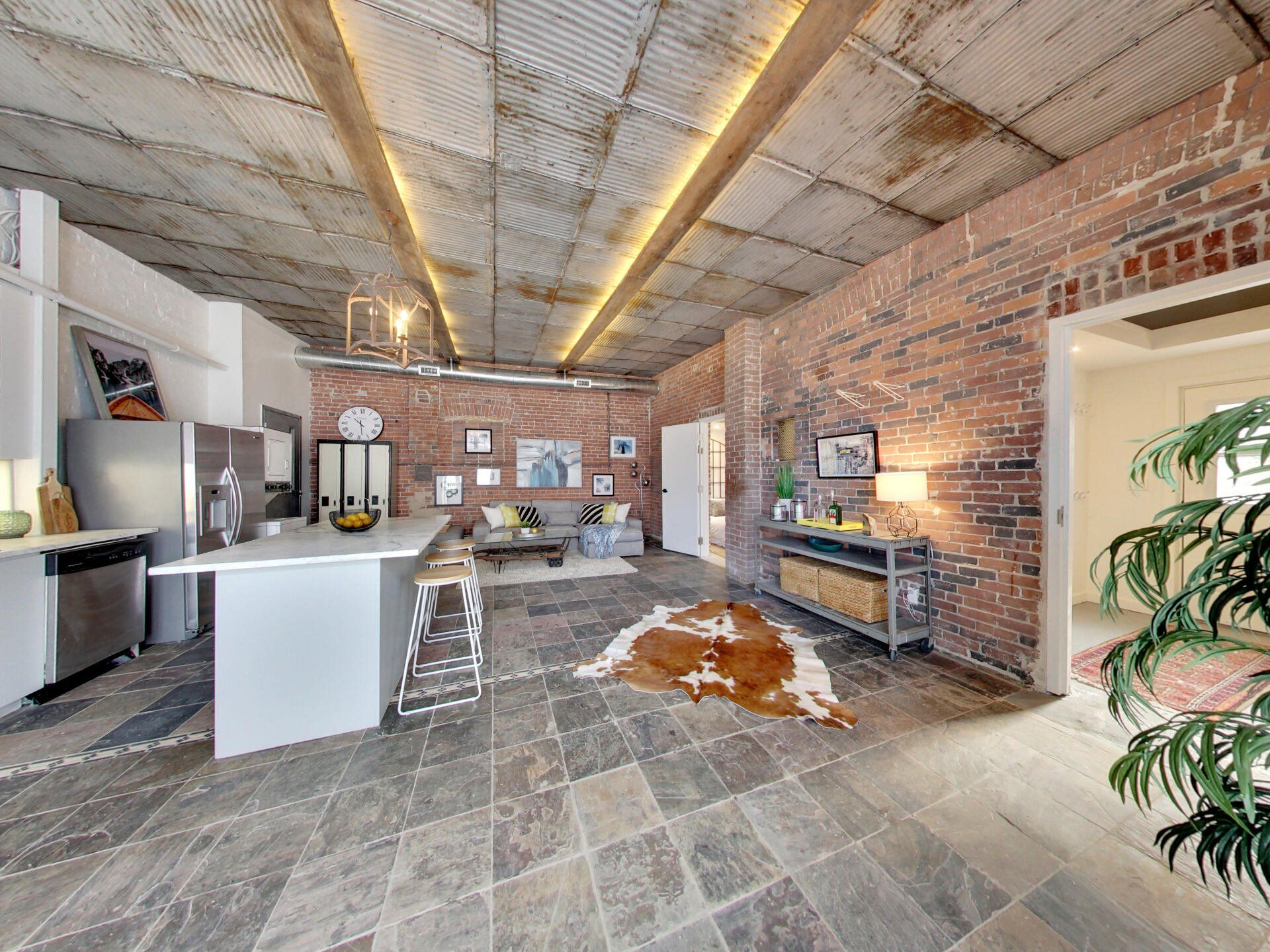 Step inside this one-of-a-kind, unique LOFT in the heart of Leslieville. The 11 foot, repurposed tin ceilings, and open concept layout offer a spacious feel. Heated bathroom floors and a crackling wood-burning fireplace make those winter nights cozy. In-suite laundry, dishwasher, ice maker fridge make your home comfortable. A bright Skylight and Air conditioning make summer days comfortable. There is an additional 200 sq ft Loft storage space above the bedroom. Work from home with custom-built desk and thick industrial door closing this space off to the rest of the house.