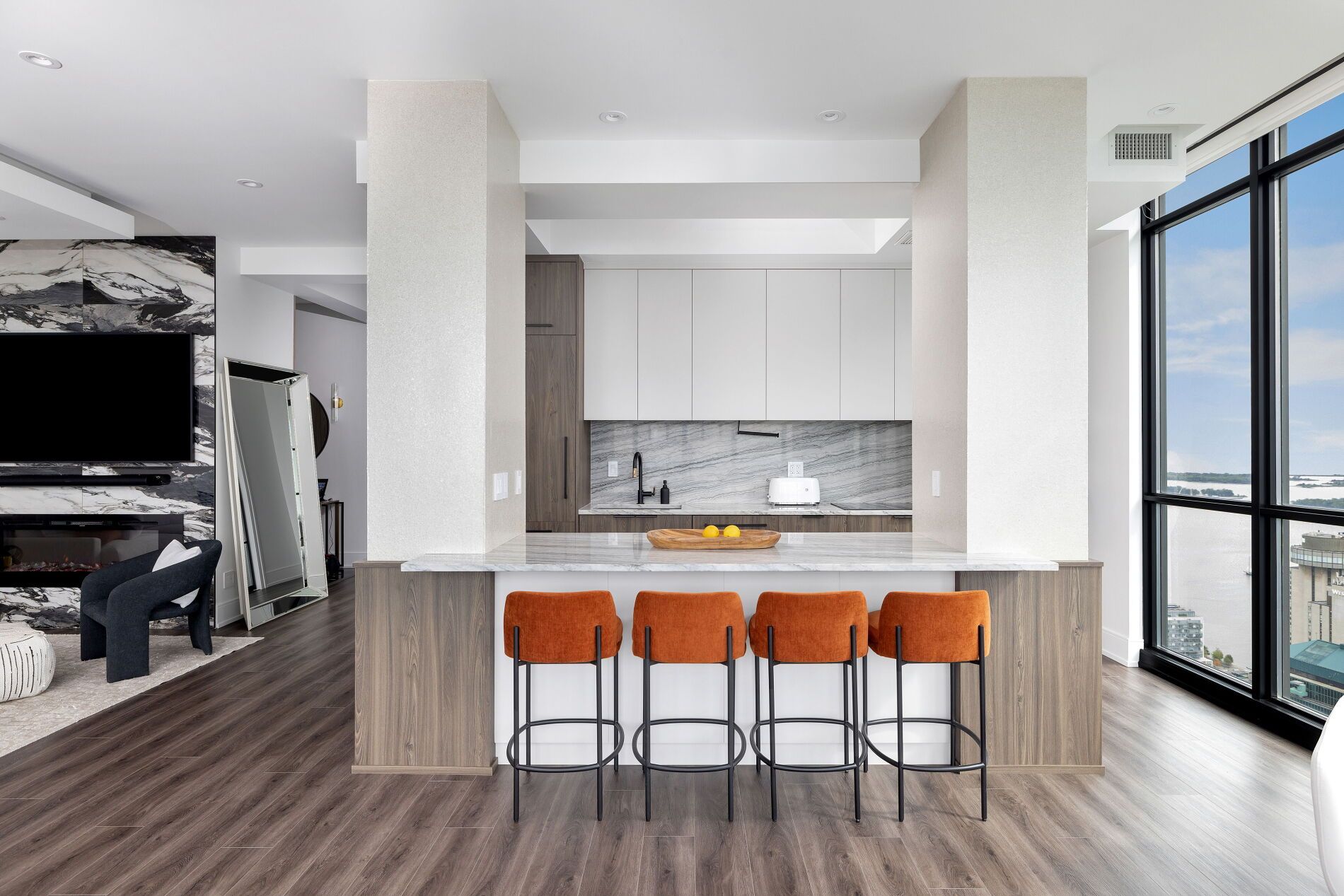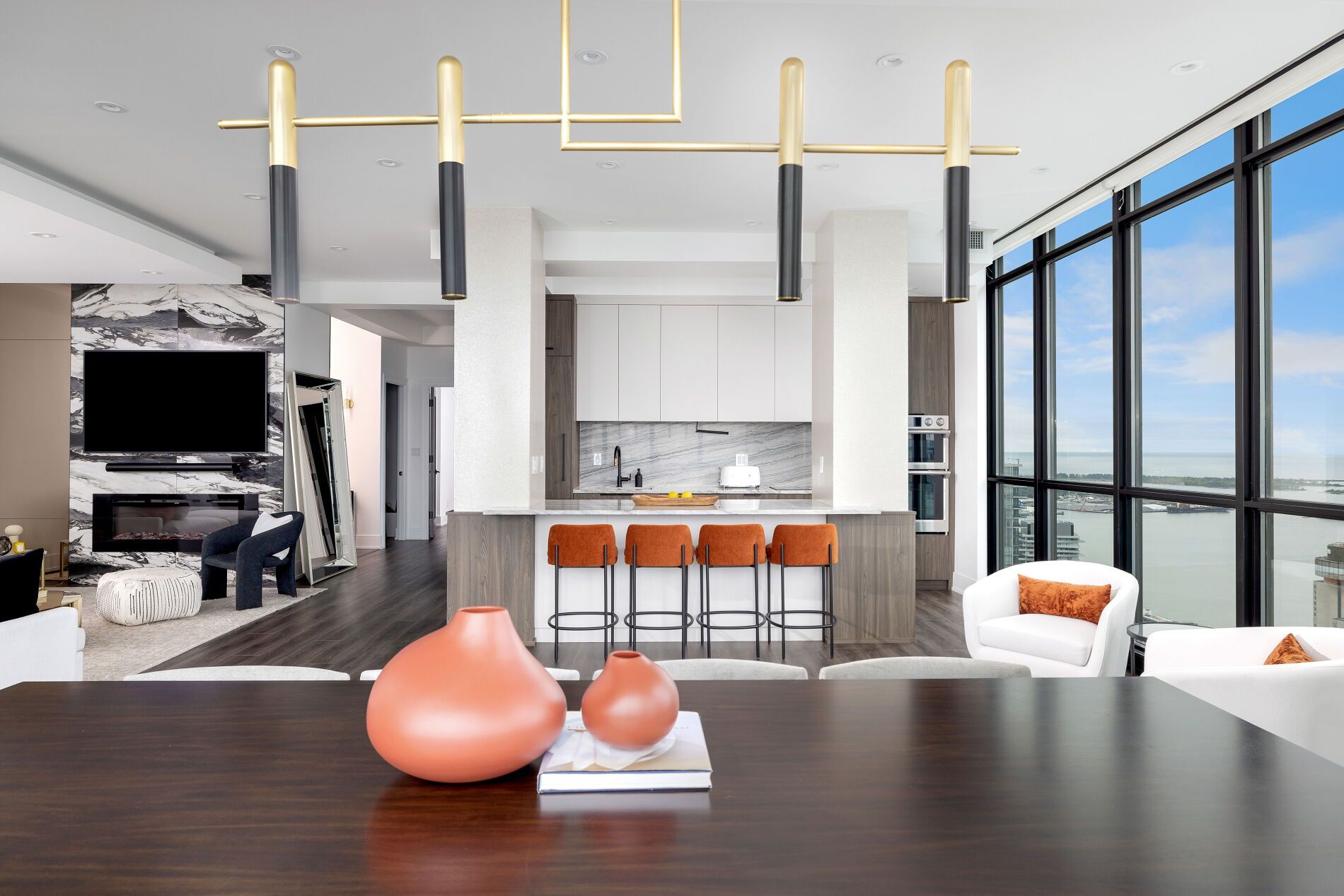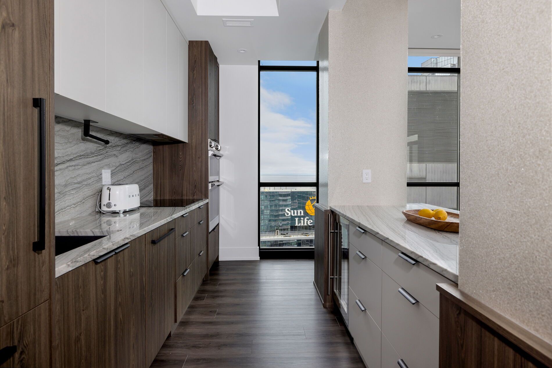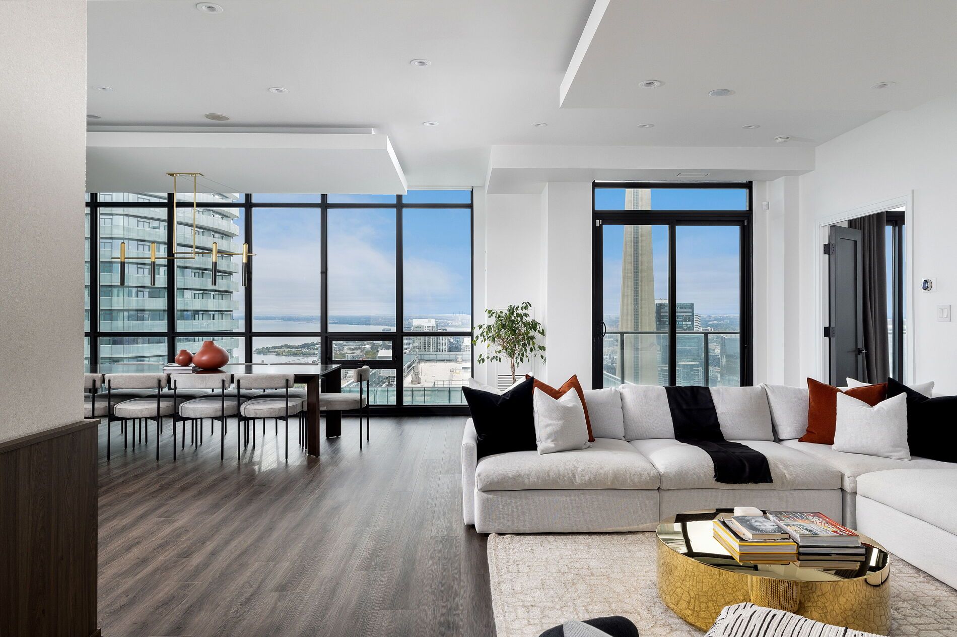 Relax & Enjoy This Fully Furnished, Renovated Designed By Celebrity Designer Corner Penthouse Suite. With Over 2000 Sq. ft. Interior Living, This Unit Offers 3 Bed 3 Bath With Floor To Ceiling Windows, 10Ft. Ceilings And Stunning South West Views. Additional, there are 2 Private Balconies. The Primary Bedroom Has A 5 Piece En-suite & Walk-In Closet. The 2nd Bedroom Has A 3 Piece Bath, And 3rd Bedroom Is Perfect For A Home Office/Den Or Guest Bedroom. All Utilities (Cable, Internet) & Weekly Professional Cleaning And Parking Are Included.