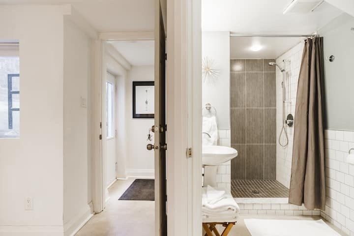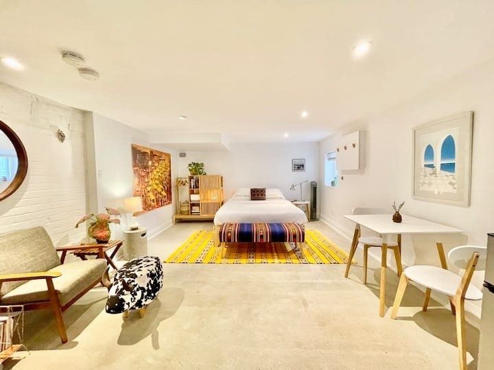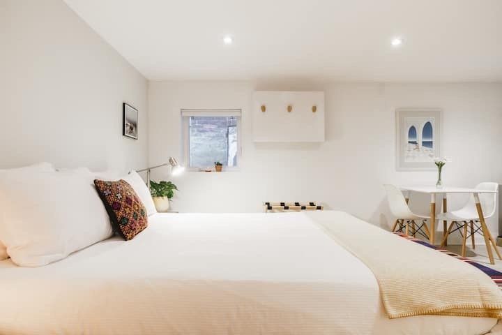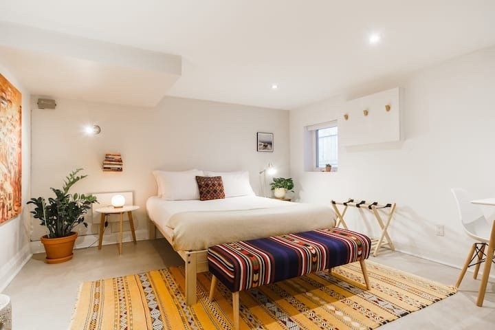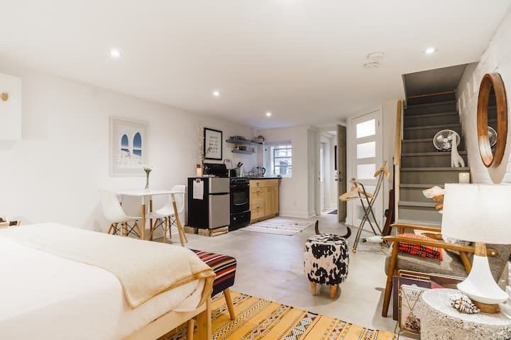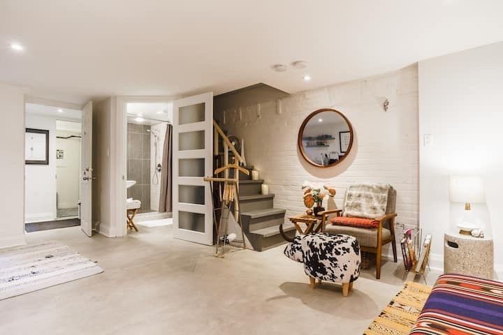 Beautifully designed beach house! Clean and quiet 2 bedroom 1 bathroom upper levels AND 1 bedroom 1 bathroom lower nanny suite with separate entrance. Steps from the sandy beach and Queen Street East, welcome to your home in one of the best neighborhoods in Toronto. Beaches, parks, cafes, restaurants, health bars, shopping, public transportation access, and the quiet glow of home. You are a minute away from a morning swim, beach yoga, or paddle board, and one minute from the Queen streetcar to downtown. Perfect for couples and business travelers.