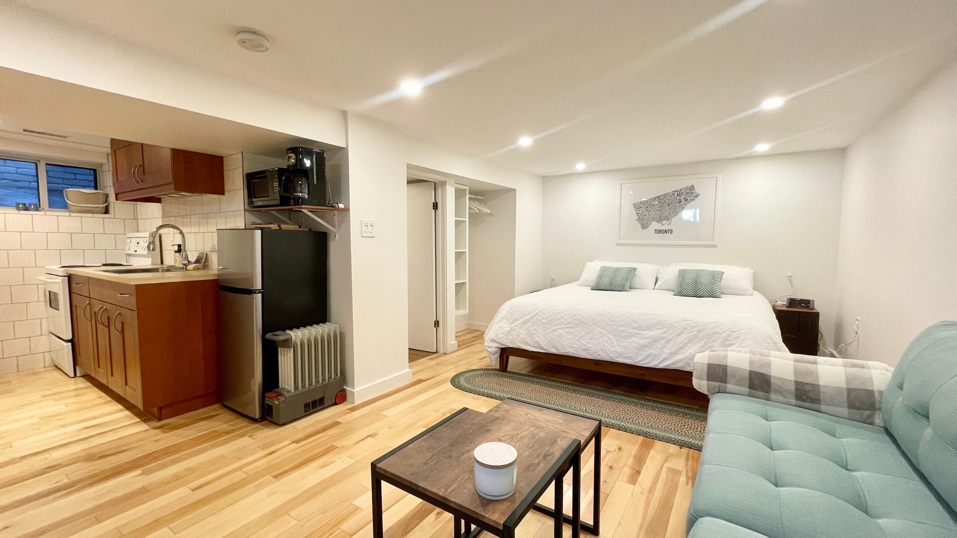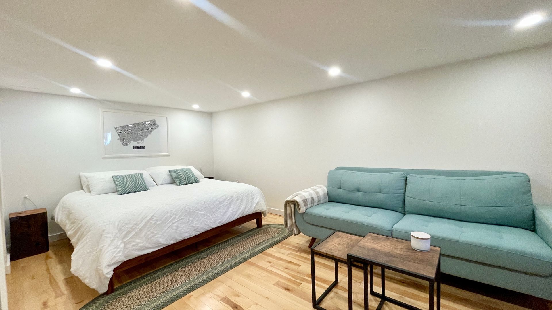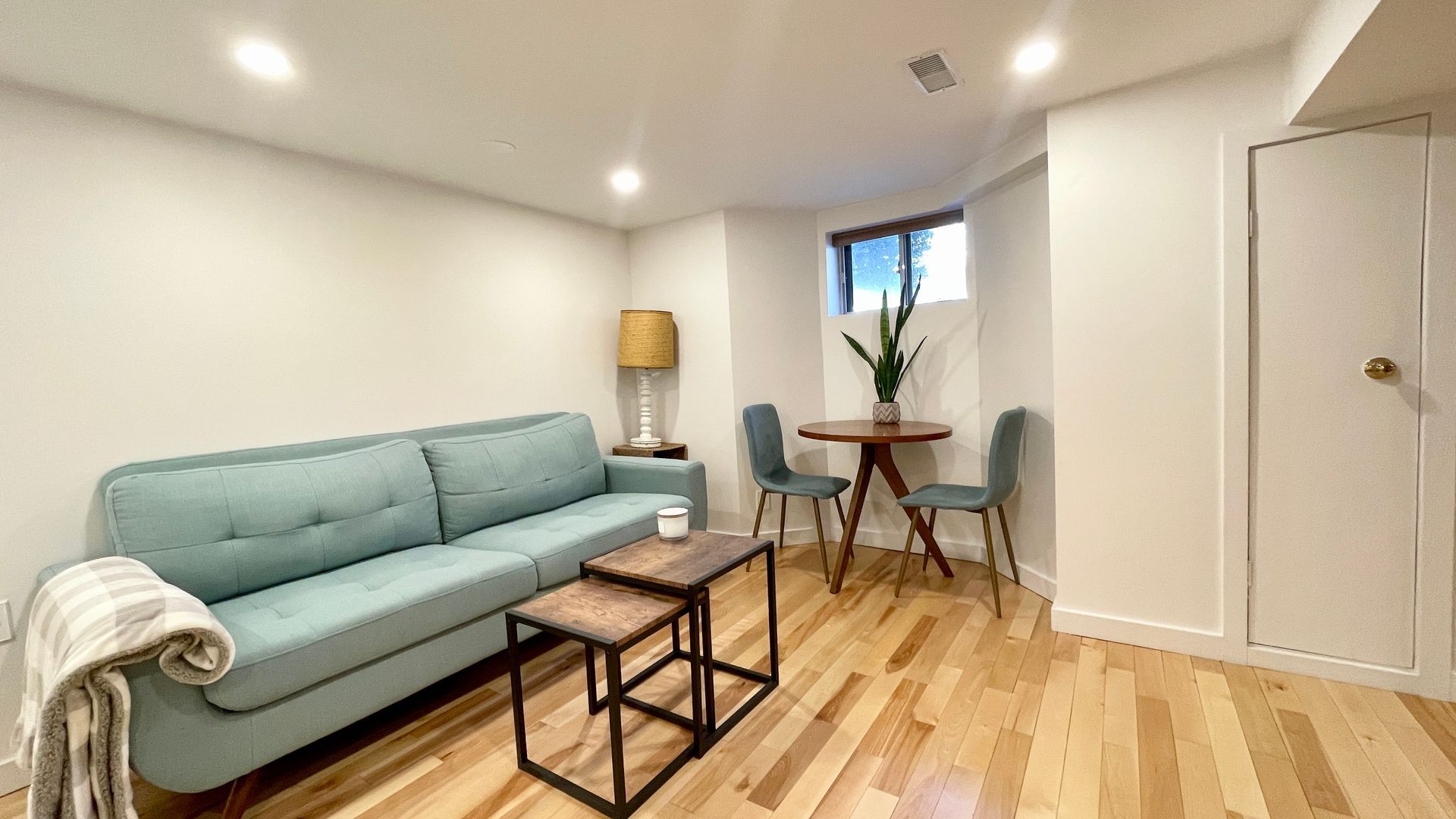 Basement can be included for an additional $2000/month and offers It's Own Private Entrance, King Bed, Kitchen, Dining, Living Room, and Bathroom.