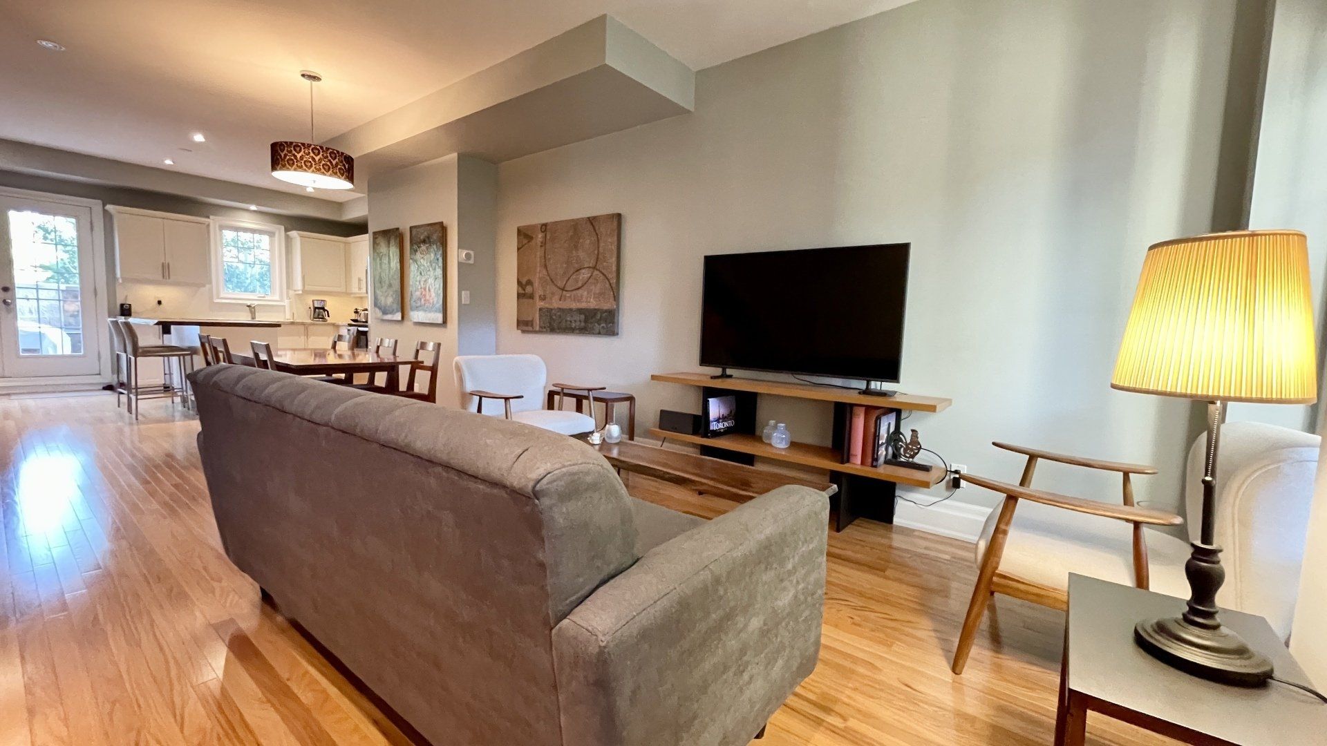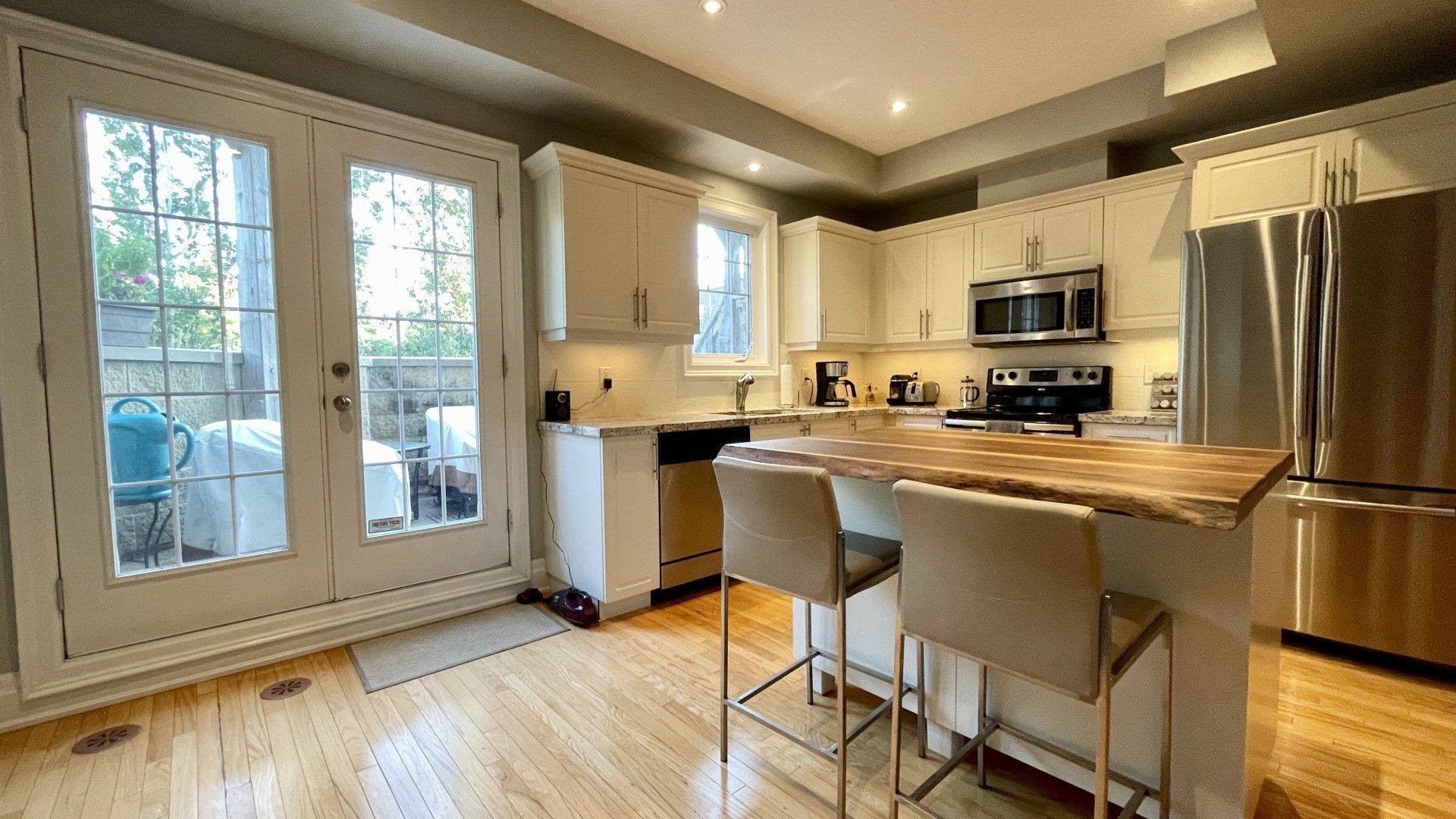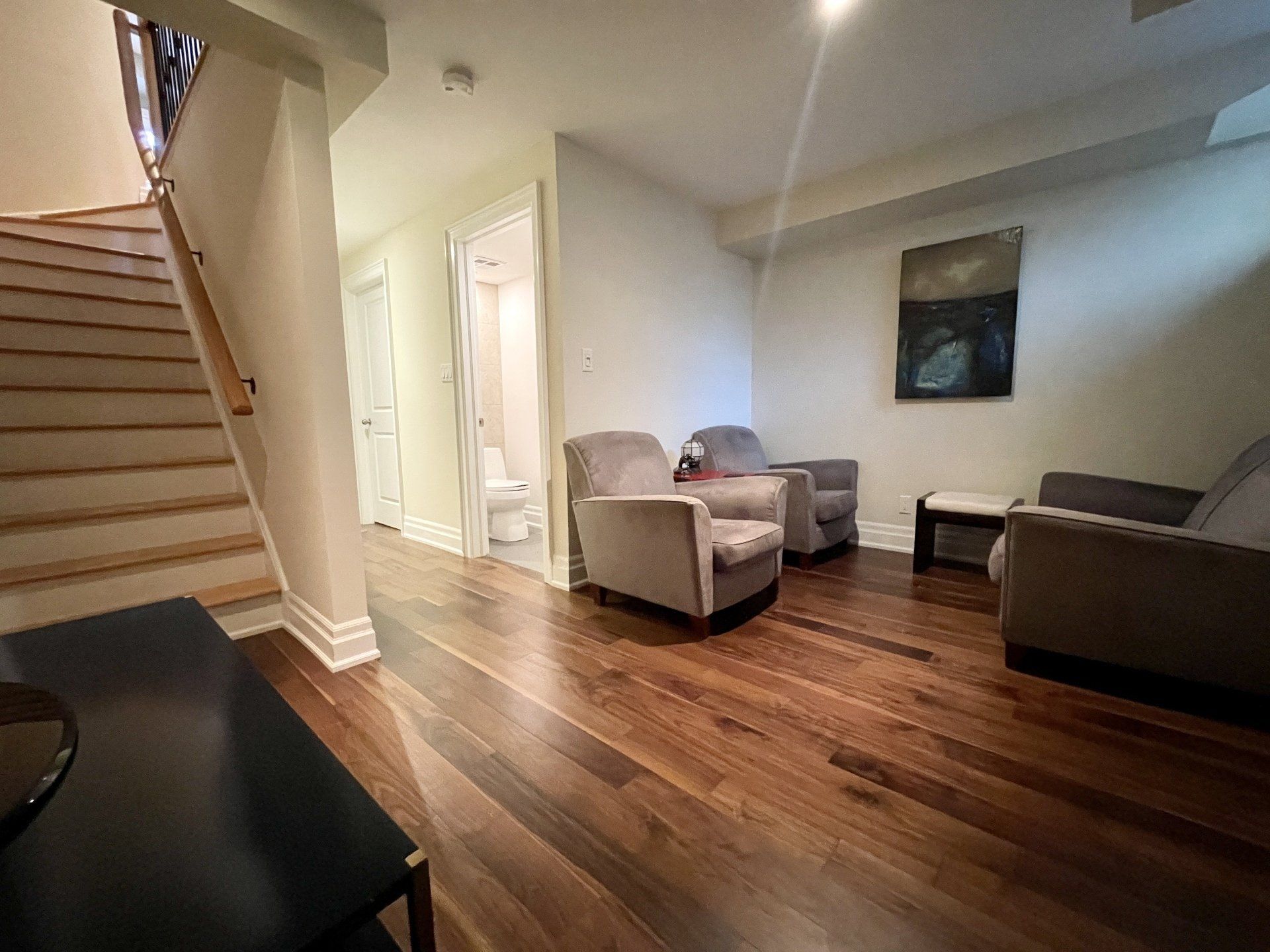 Enjoy 2000 square feet of living space spread over 4 levels. This unit comes fully furnished. The main floor offers a living room, dining room, kitchen with butcher block live edge counter, and door to the back patio with BB Q and lovely outside patio furniture. Make your way up to the second level for the second and third bedrooms (the third bedroom can be set up as a home office), and a cheater ensuite washroom. As you take your next set of stairs up, you will be greeted by a generous size primary suite complete with a fireplace, walk-in closet, and ensuite washroom. Enjoy the soaker tub or glass-enclosed shower. The basement offers another area for a home office, or kids' playroom, bathroom, laundry, storage, and the access to underground parking garage. This garage is large enough for 1.5 cars (or storage and parking for 1 large vehicle). All utilities and furnishings are included in the rental rate amount.