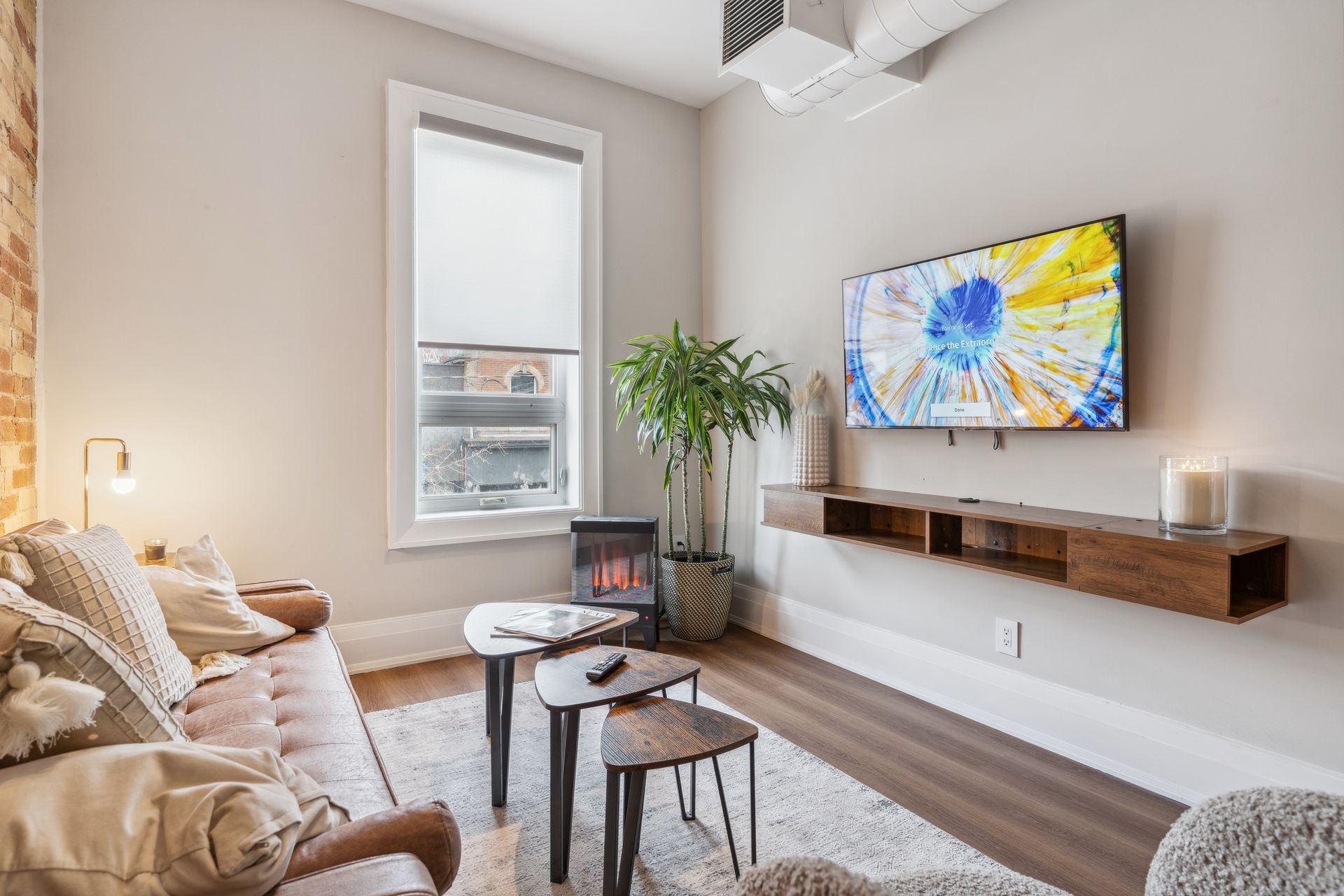 Brand New - Never Lived-In, Prestigious Luxury Rental Building. Situated In Parkdale Village. A Bohemian Mixture Of Shops And Restaurants At Your Door. Steps From TTC Transit, Minutes Walk To King West, The Drake Hotel And Ossington Strip. This Bright And Spacious 710 Sf Furnished Apartment Offers 2 Bedrooms. The Apartment Is Adorned With High-End Finishes That Elevate Your Living Experience. Sleek Hardwood Floors, Original Exposed Brick, Contemporary Fixtures. The Kitchen Is Fully Equipped With All Necessary Cookware And Utensils. Both Bedrooms Feature Comfortable Queen-Size Beds, With High-Quality Linens And Bedding. There Is Ample Storage Space For Your Belongings, With A Spacious Closet In Each Bedroom And Ensuite Laundry. Every Detail Has Been Carefully Selected To Provide Both Style And Comfort. The Result Is A Modern And Elegant Living Space That's Ready To Impress. Pets Allowed.**** EXTRAS **** Outdoor common area with heat lamps. All furniture, beds, decor, cookware and utensils. Just bring your clothes.