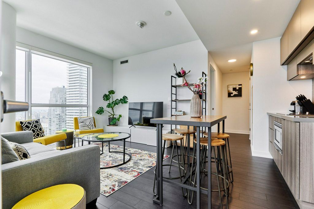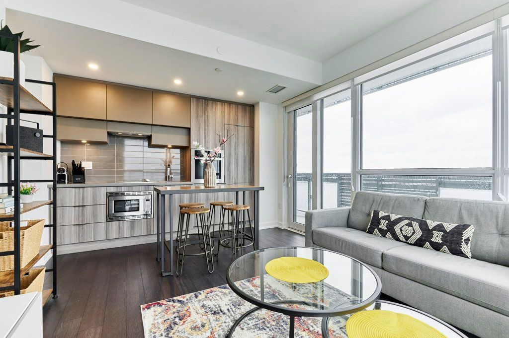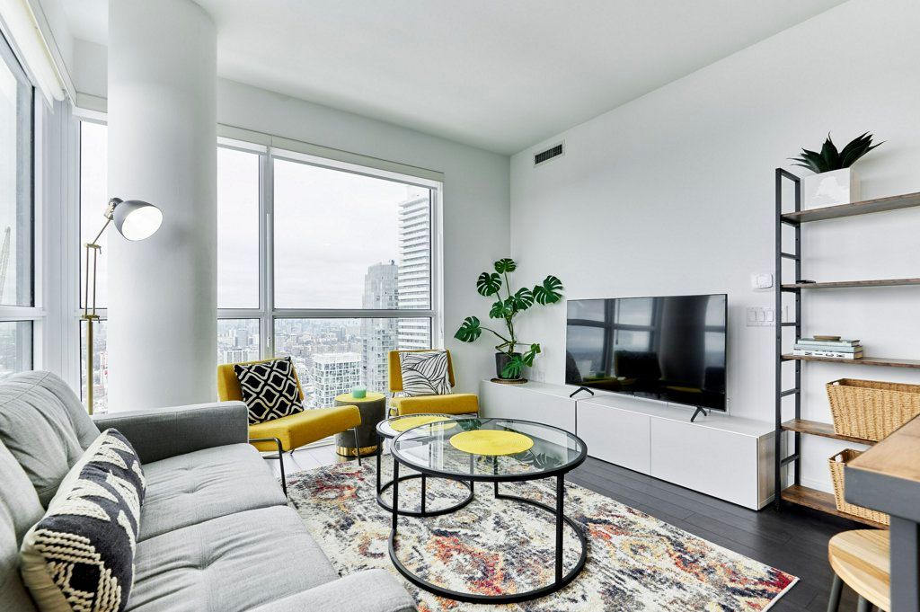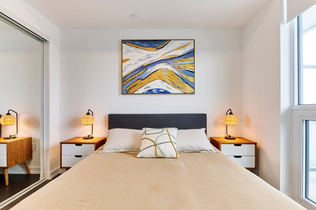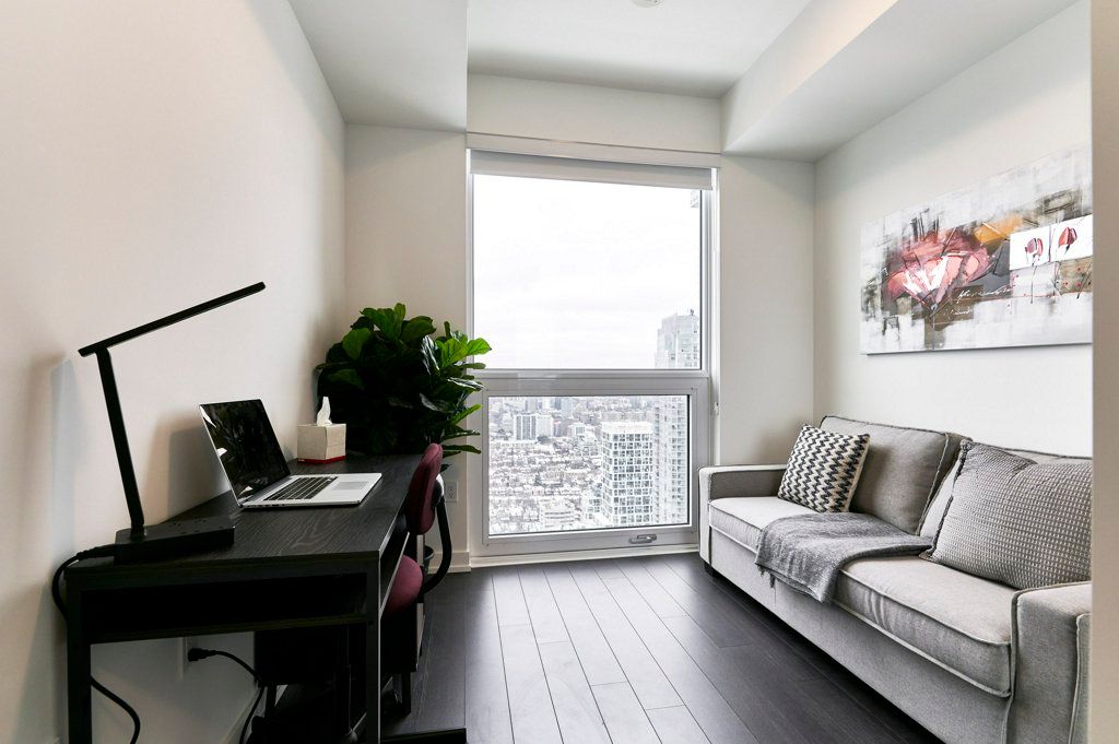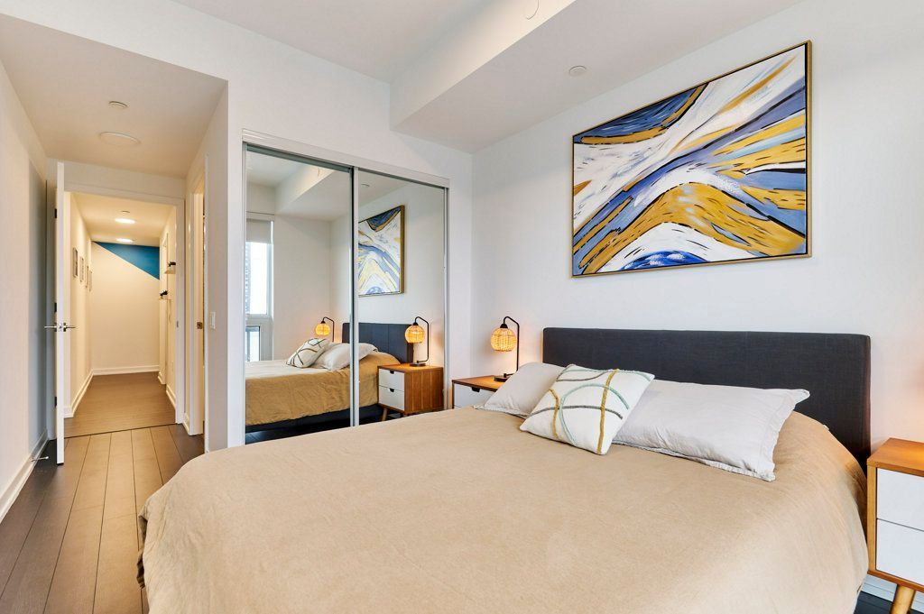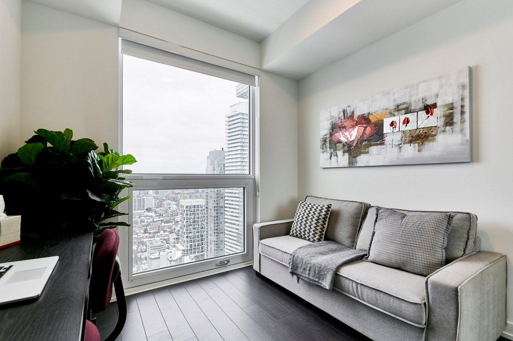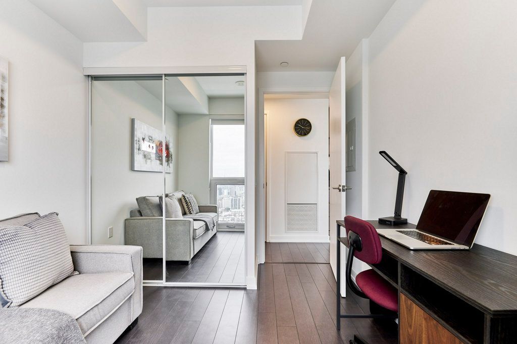 This NEW Fully Furnished 2 Bedroom 2 Bathroom with Unobstructed South and East Views. Currently set up as 1 Bed + Office (Office comes with a 2 person sofa bed). Enjoy 749 SF interior space + 105 SF balcony with Views of the CN Tower and lake!