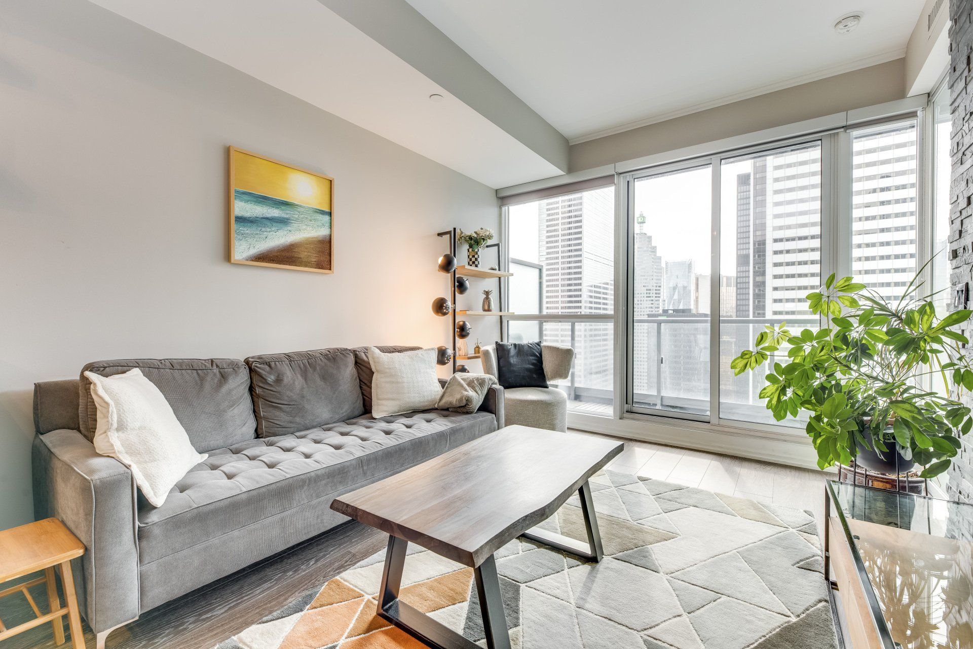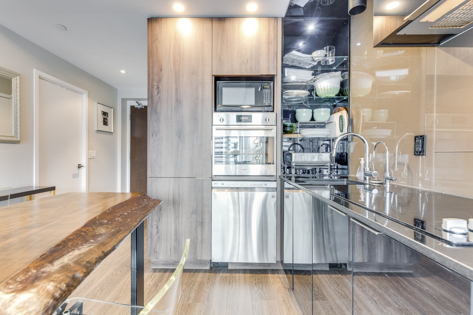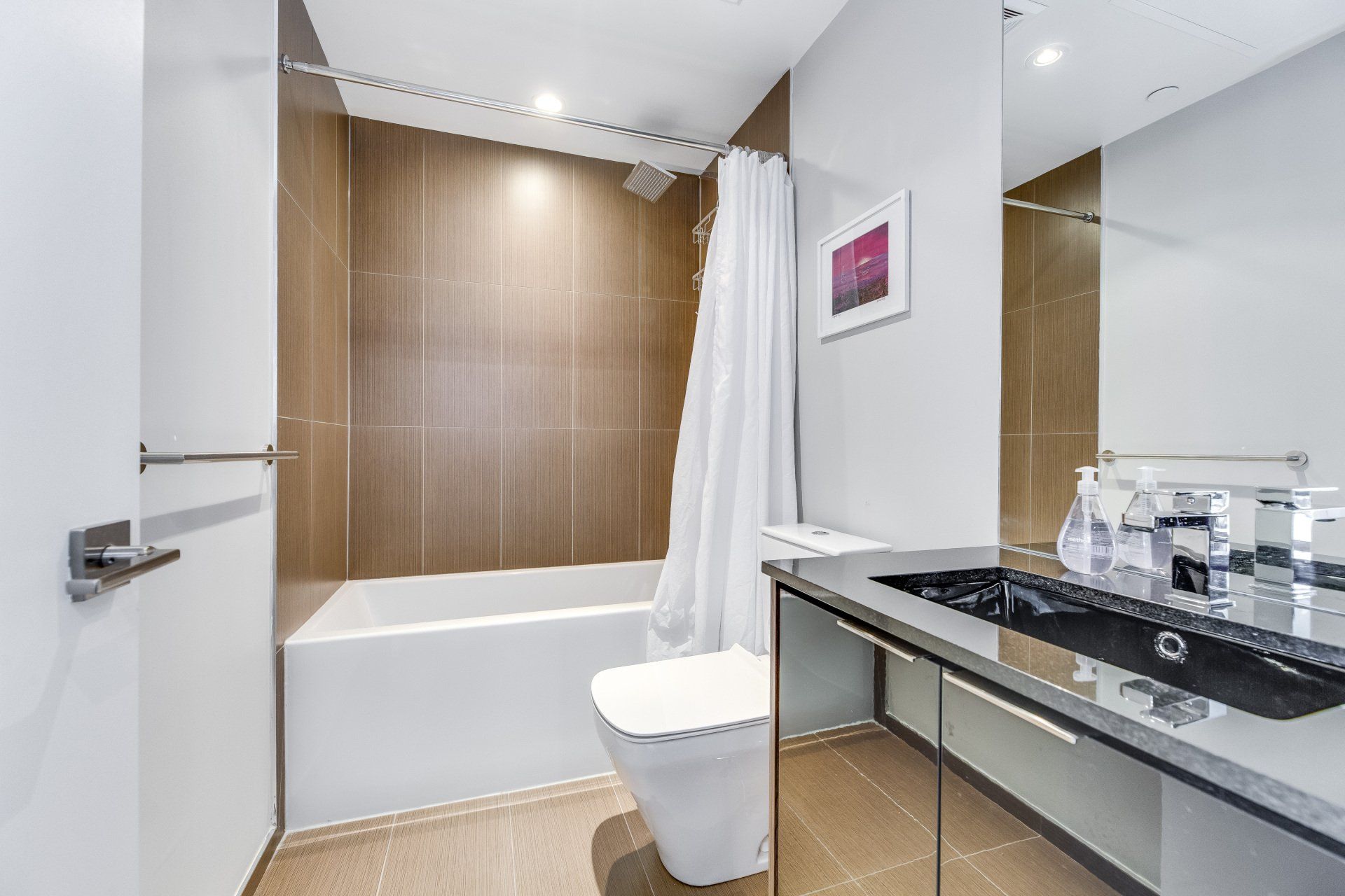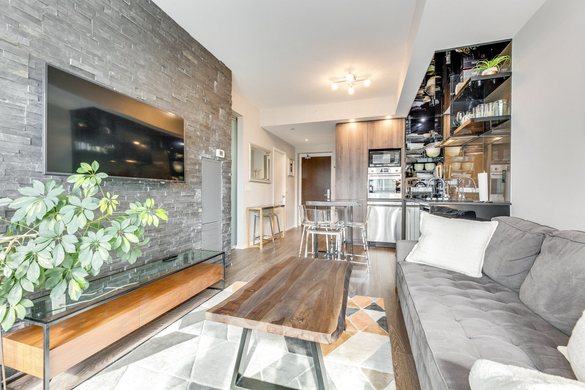You'll find this modern 1 bed + den in the heart of it all! Close to shops and TTC this is a dream rental. The live edge island makes this rental perfect for entertaining friends. The bed is absolutely fantastic with floor-to-ceiling windows and ample storage. A large in-suite laundry room is a rare find in downtown living. You'll be taken away with the city lights at night on your balcony. The murphy desk/bed allows you to work from home and entertain a short-term guest.