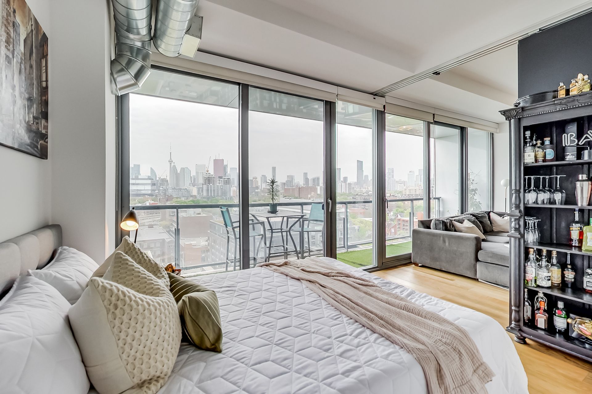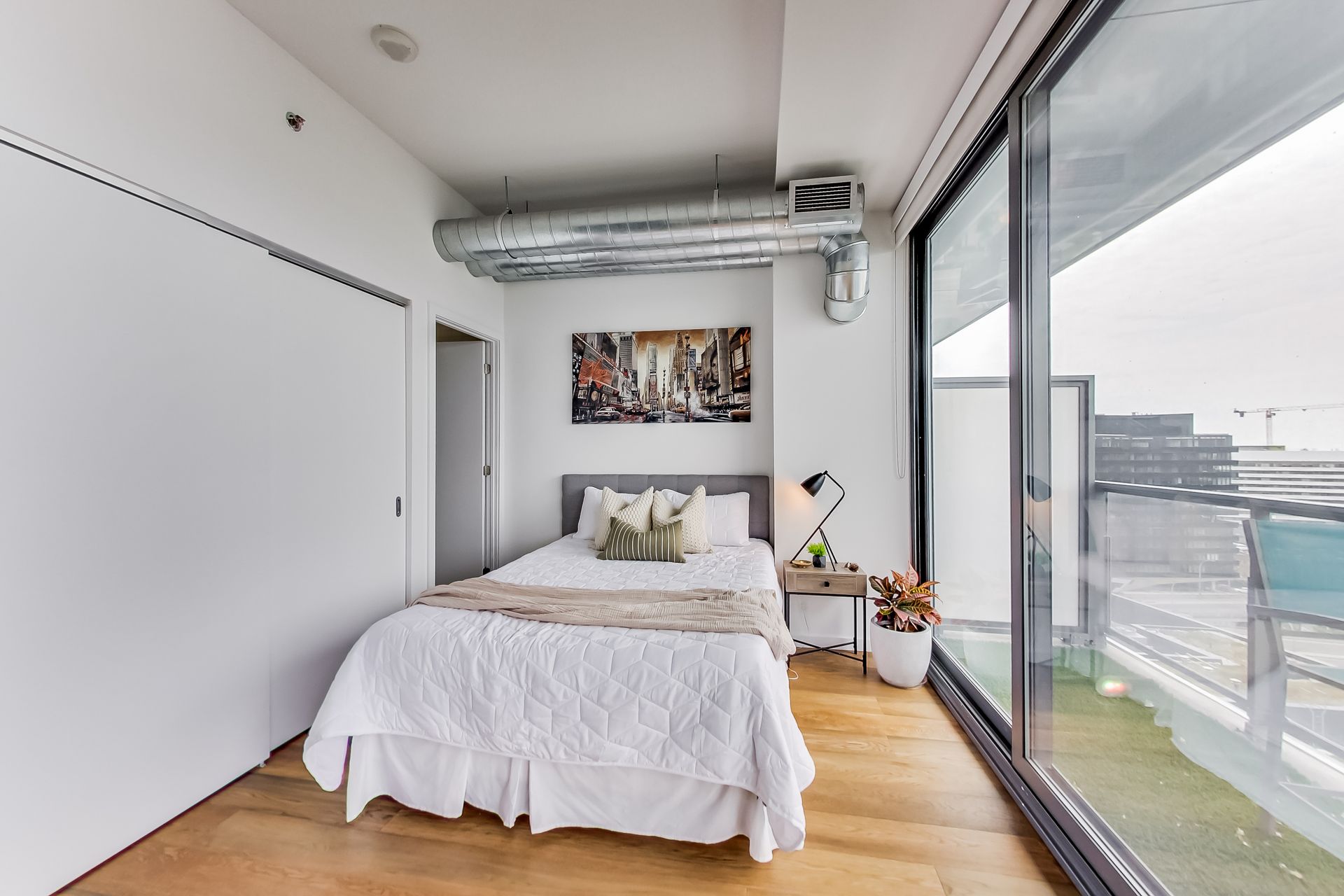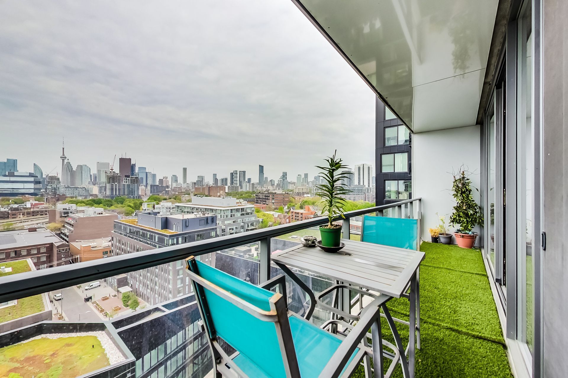 2+1 Bedrooms In A Sprawling 1434 sq. ft. of Living Space. Double Master Suites W/ Ensuite Baths. Split Bedroom, For Premium Privacy.2 Pc Powder Room Ideal 2nd Storey Work-From-Home Den. 1450 Square Feet Of Style Inside And Entertainer's Dream Space Offering Impressive L Shaped Wrap Around Terrace, A Second Private Balcony With Stunning Views Of The Iconic Toronto Skyline.