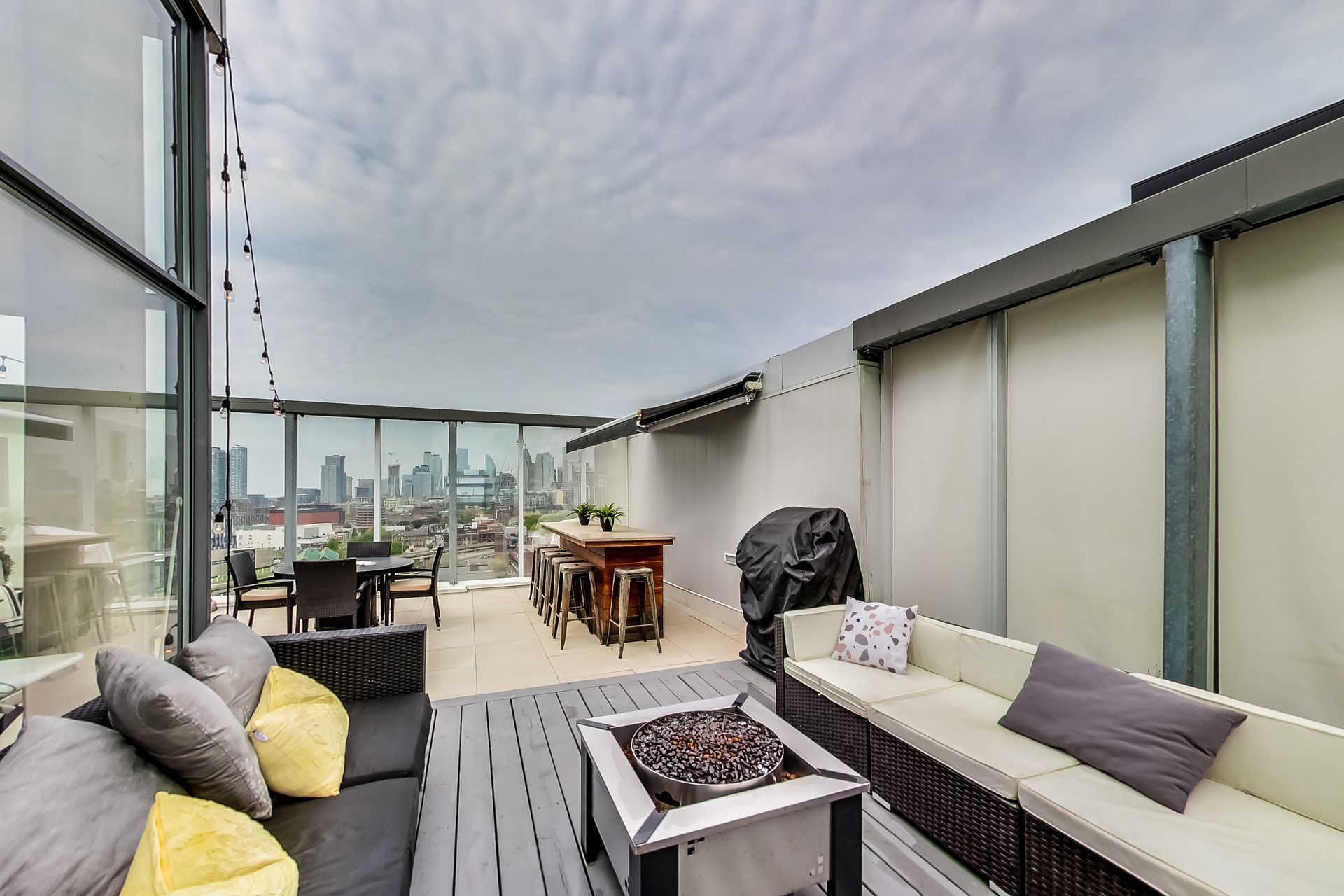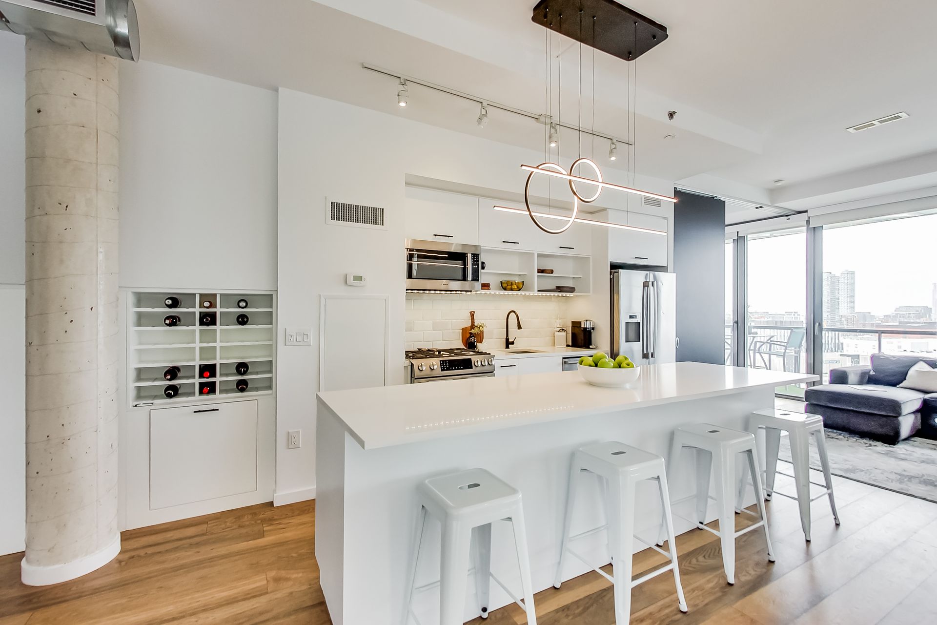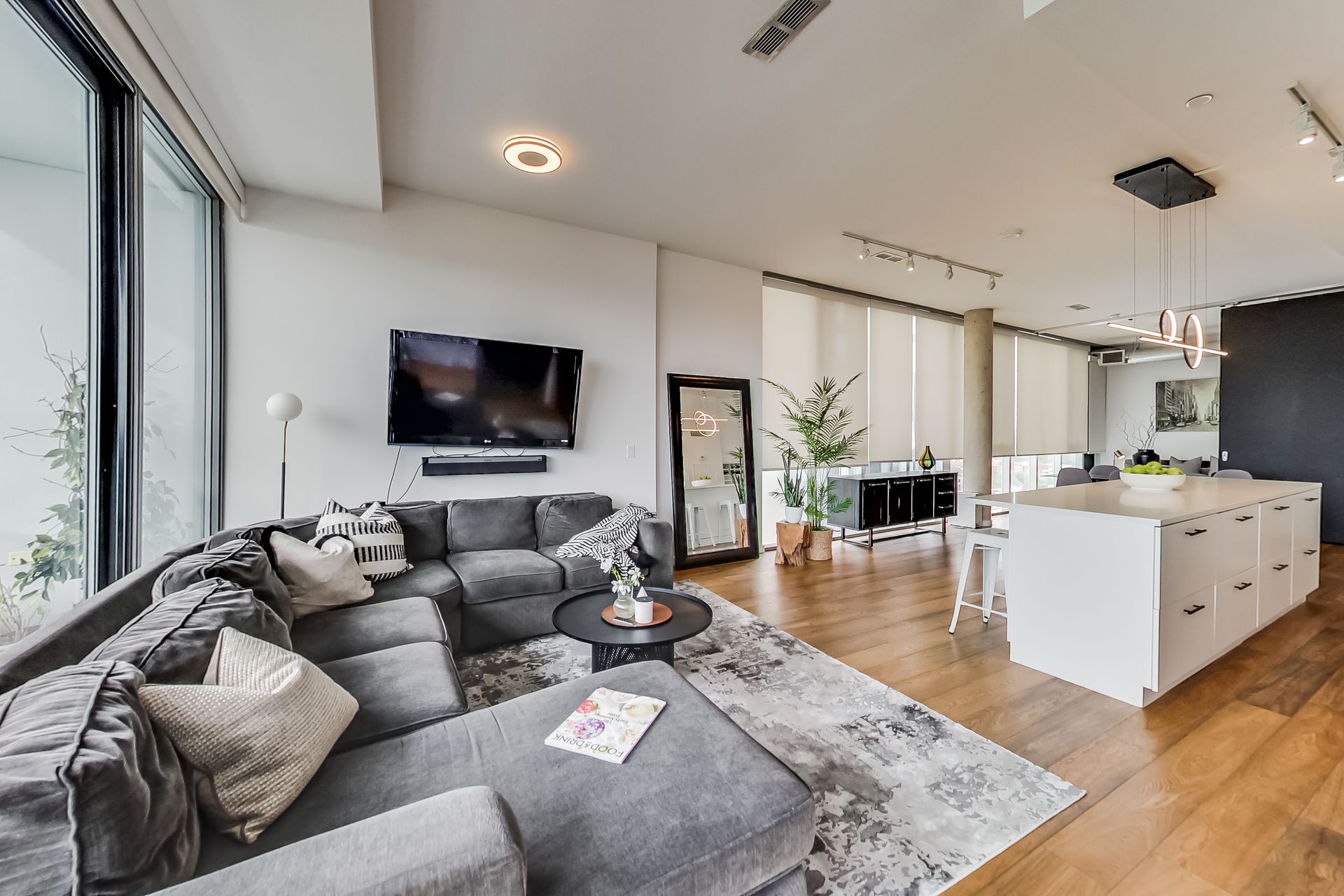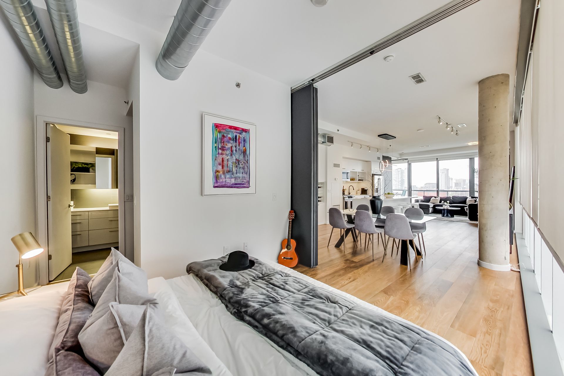 2+1 Bedrooms In A Sprawling 1434 sq. ft. of Living Space. Double Master Suites W/ Ensuite Baths. Split Bedroom, For Premium Privacy.2 Pc Powder Room Ideal 2nd Storey Work-From-Home Den. 1450 Square Feet Of Style Inside And Entertainer's Dream Space Offering Impressive L Shaped Wrap Around Terrace, A Second Private Balcony With Stunning Views Of The Iconic Toronto Skyline.
