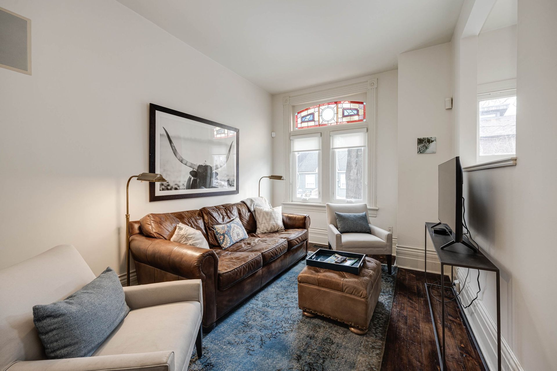 Welcome tot his Stunning 4 bedroom + Den 2.5 bathroom townhome! This home is located in King West with many different shops and restaurants nearby! Cozy and inviting, you will feel perfectly at home! The master bedroom located upstairs features a king-sized bed and an ensuite bathroom. The 2nd floor front room has a queen-sized bed, the 2nd floor back room has a twin-sized bed, and the basement bedroom has a pullout day bed which can either be a twin or queen and a half bathroom. There is a den with a workspace - perfect set up for those who are working from home.