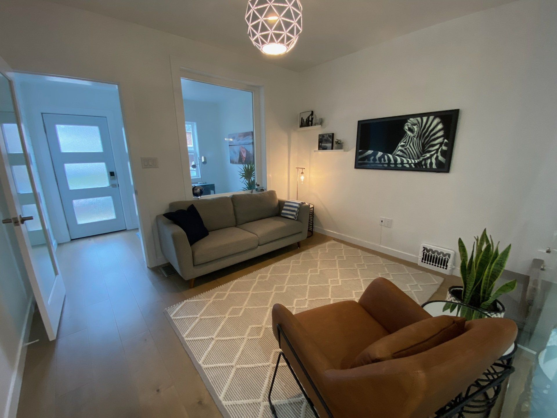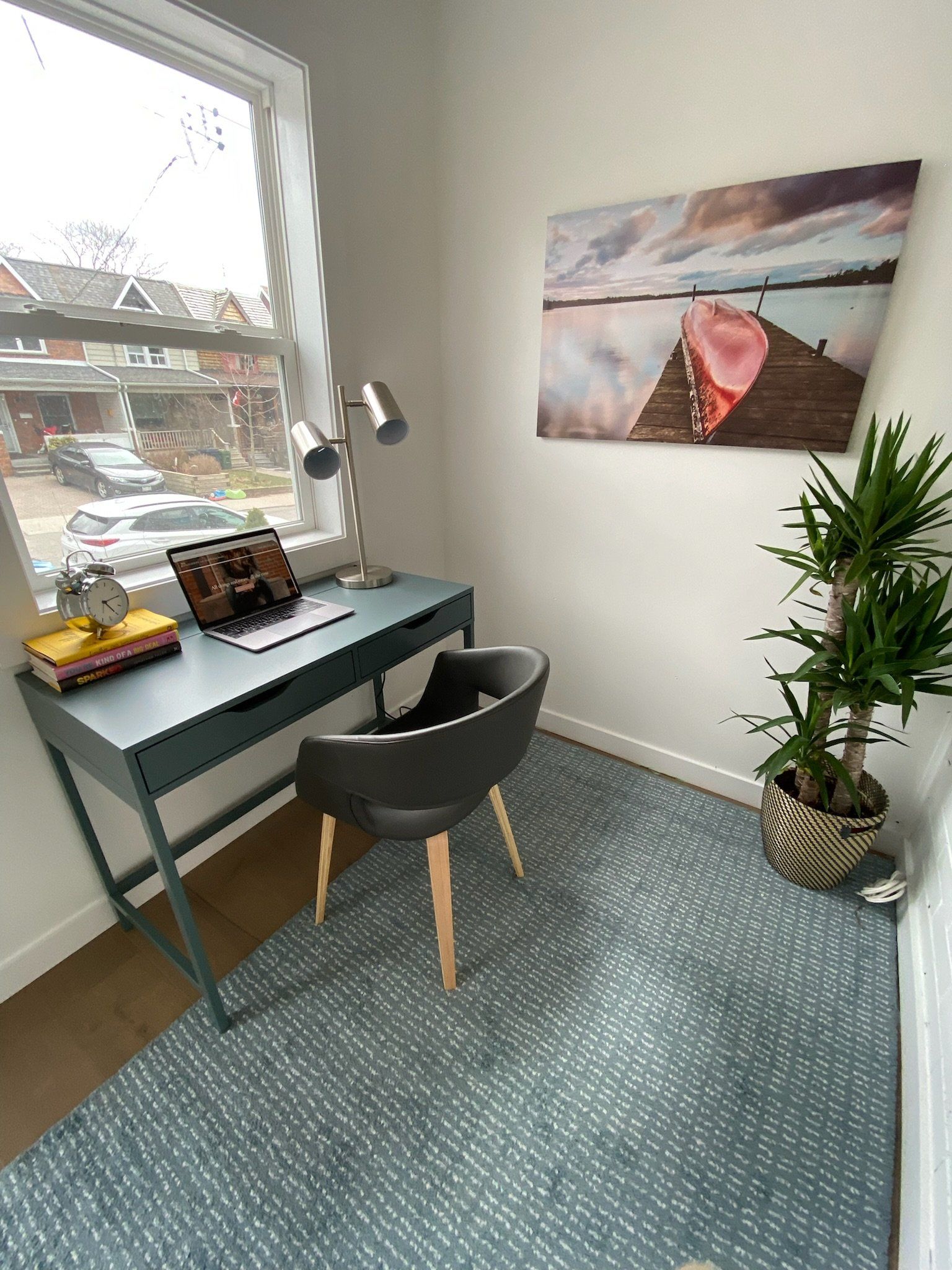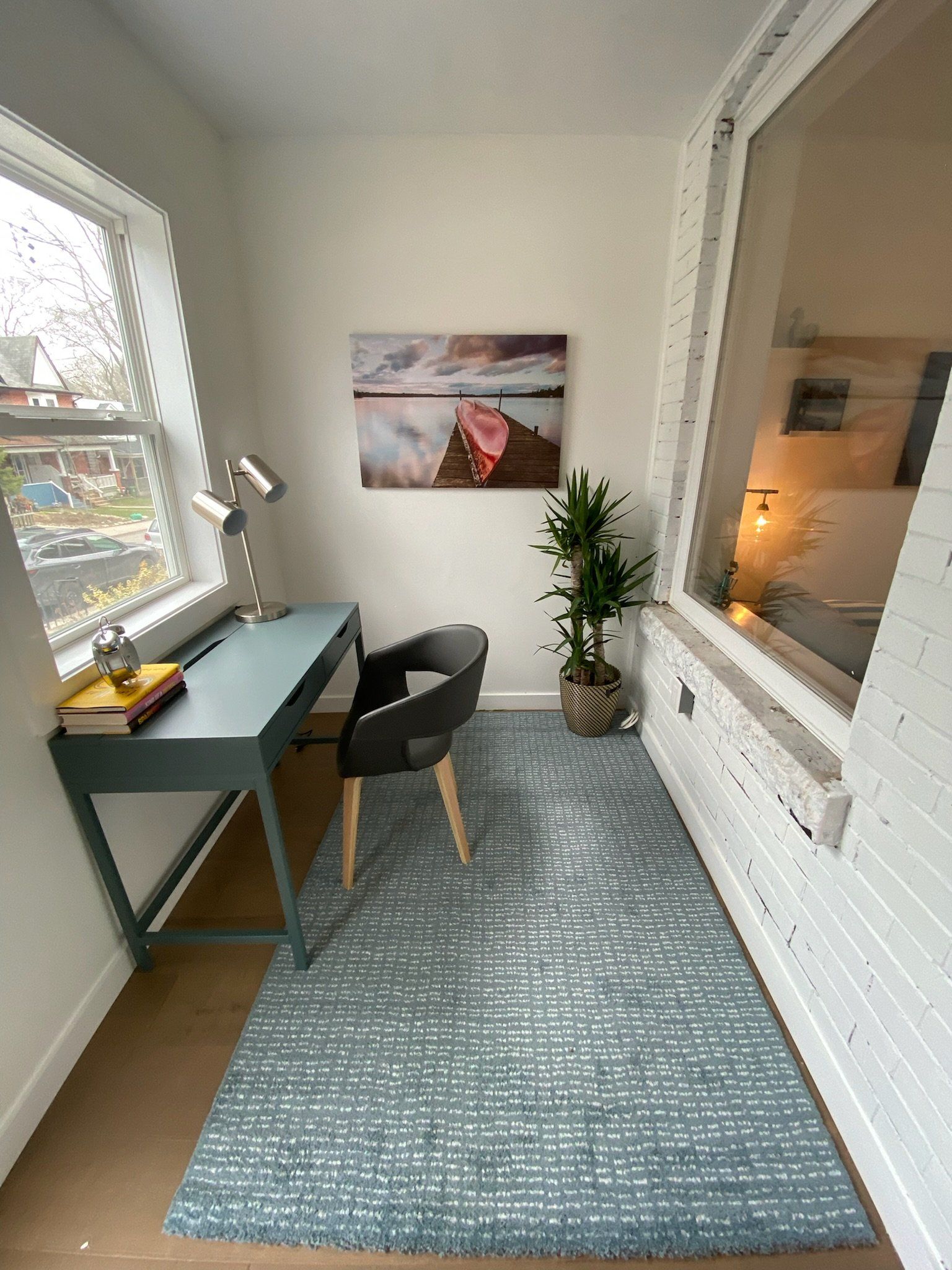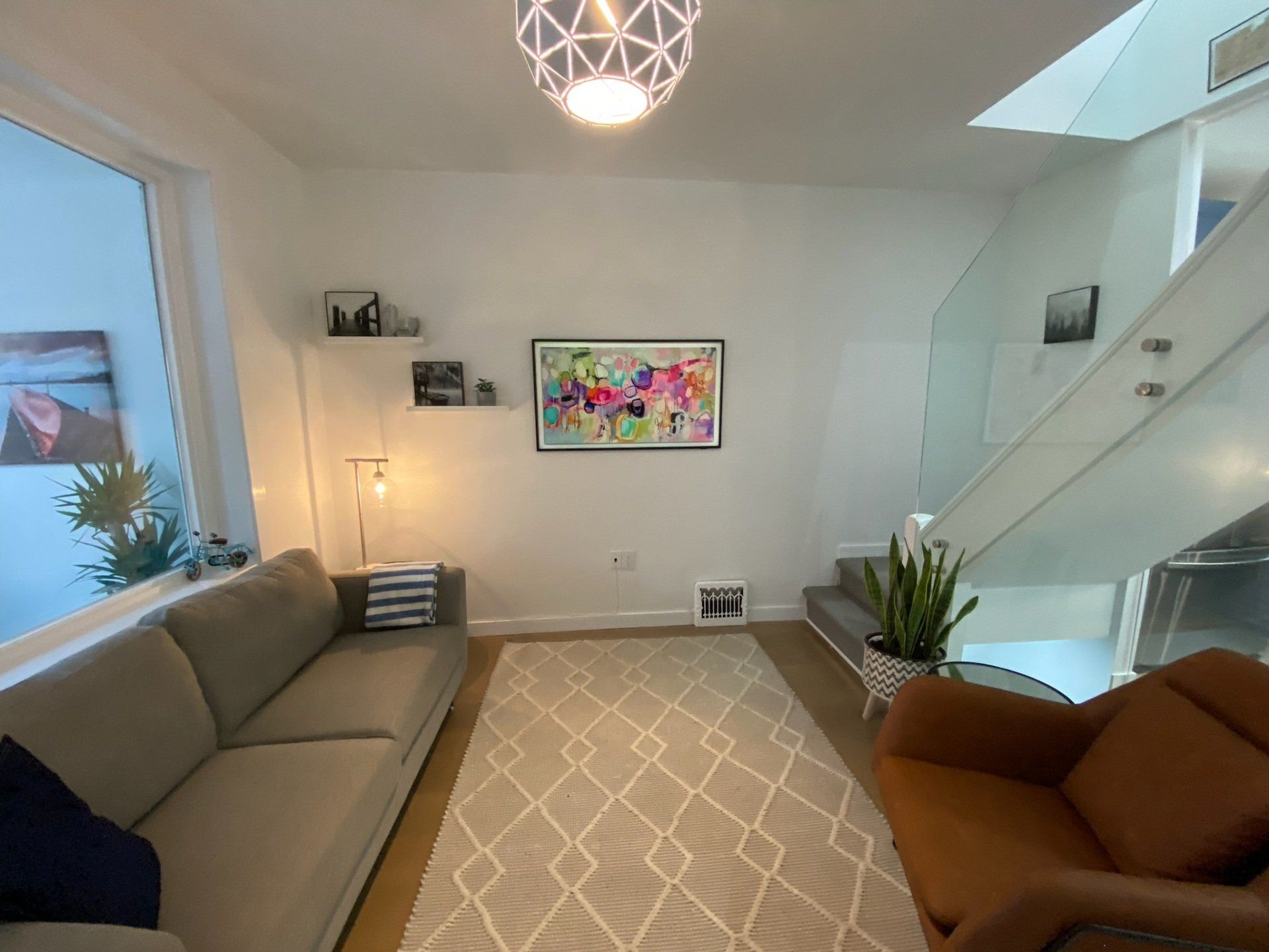 The home itself is a lovely row house situated on a very nice residential street. On the main floor, you’ll find the living room, kitchen, dining room, and office area. The upper level of the home has two bedrooms and one bathroom. The lower level has one bedroom (with walkout), one bathroom, and a laundry room.